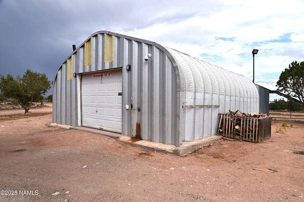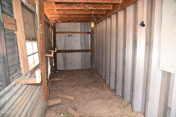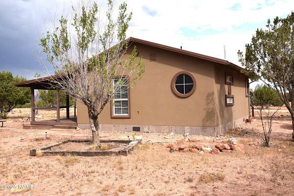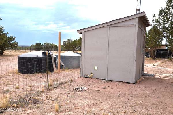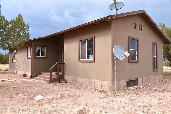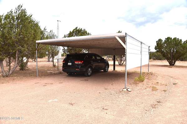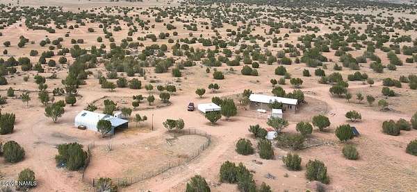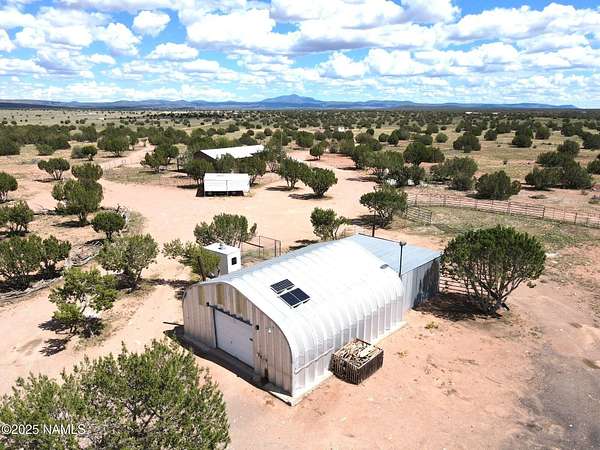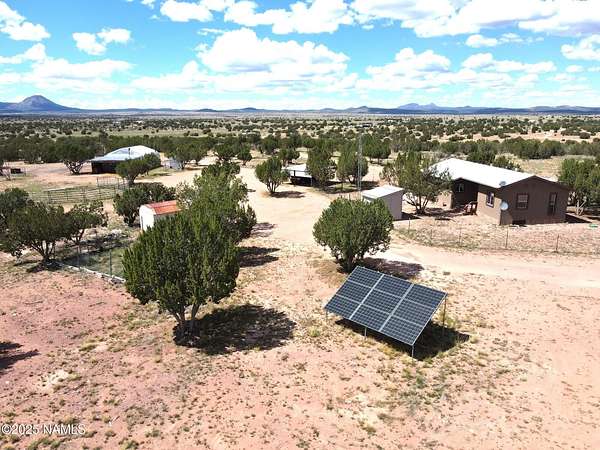 This beautiful off-grid fully fenced 20-acre property has a 1164-sq ft custom-built home with 2-bed, 1-bath, family room or den, plus office. It has insulated stucco siding and metal roof. The home is freshly painted, has new carpet and newer vinyl plank flooring with front 8'x28' deck and smaller deck at back door. The home is powered by propane, solar and a wind turbine. There is a washing machine, refrigerator and oven/stove in kitchen. 12-volt freezer and propane dryer in the solar shed. The 28'x25' Quonset hut has a cement floor, handy loft, work area and shelving as well as a woodburning stove and solar hook-ups. A 22'x18' 2 stall barn with round pen attached has a side door to a 6'x22' tack room with plenty of storage for hay and straw and all needed tack. MORE... Also included is a 4'x8' walk-in chicken coop with 6 individual nesting boxes. The attached 6'x12' fenced run has a top fence to protect the chickens. A big, fenced garden area has its own grey water tank. And there is an extra 9.5'x12' metal storage shed behind the house. The 20-acres are fully fenced plus additional fence around the home itself, with 3 entry gates on 3 sides and a 2-car carport. The home boasts a large standard septic system and water cistern. The property is set up for horses and chickens, and has a big, fenced garden area. The property is easily accessed located just south of I-40 between Tanner and Arizona Road, approximately two miles south of I-40.