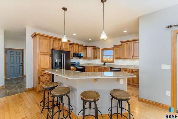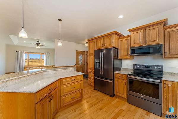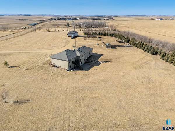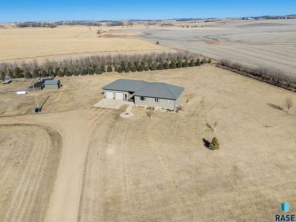Fresh opportunity for acreage living! This ranch-style walk-out sits on 15 beautifully treed acres with a shelter belt, garden area, raspberry patch, apple tree, and also has plenty of pasture for horses and cows. The 5-bedroom, 4-bath home offers a warm, functional layout with wood floors in the kitchen and dining, Cambria quartz countertops, center island, and French doors leading to the deck. The living room features a tray ceiling and propane fireplace. Main level includes mudroom/laundry, a spacious primary suite with walk-in closet and private bath, plus an additional bedroom with walk-in closet. The lower level offers a large family room with walk-out access, open office area, and three more bedrooms. Outbuildings include a 40x50 shed and 16x40 shed with electricity, plus a 16x12 storage shed, perfect for shop space, hobbies, or equipment. This property offers the space, functionality, and setting that are hard to find all in one place.
