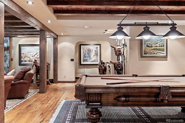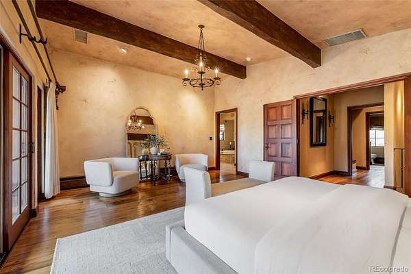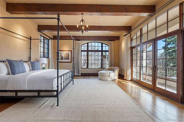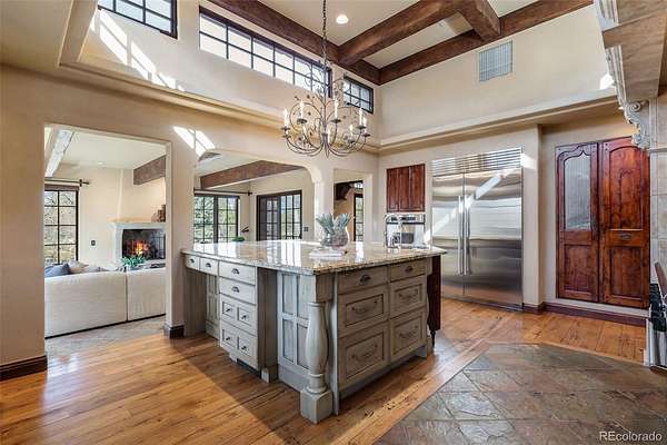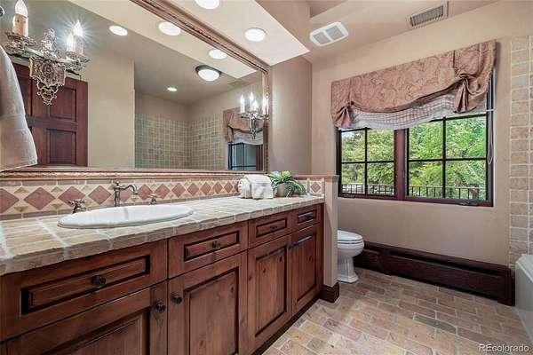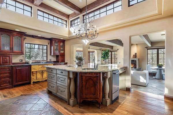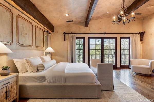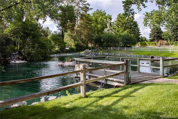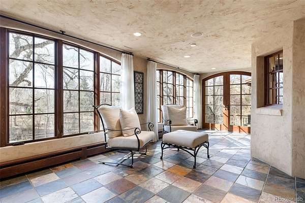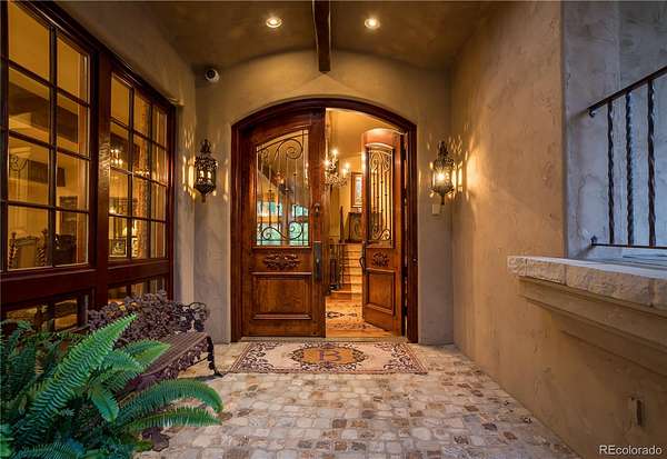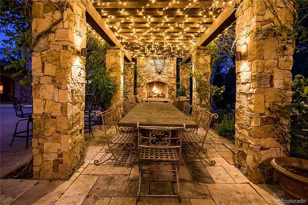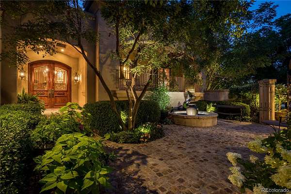 At the end of a private lane and backing to serene Little Dry Creek, this extraordinary estate spans 2 acres of park-like grounds. Gated circular drive & elegant porte-cochère set the tone, welcoming you to a European-inspired residence where timeless architecture meets exceptional craftsmanship & bespoke detail—all framed by breathtaking natural surroundings. Inside, a dramatic entry reveals beautifully curated living & dining rooms that open to a balcony overlooking the stunning backyard. Reclaimed hardwood floors, hand-plastered walls, intricate wrought iron, custom-carved European stone fireplaces and exquisite lighting create warmth & character. Chef’s kitchen blends artistry with function, highlighted by hand-painted tile signed by artist, Scott Yablonski. Sunlit primary suite is a luxurious sanctuary, with private patio, spa-inspired 6pc bath, huge walk-in closets and adjacent guest en suite. Expansive lower level offers 2 en suites, family & game room, wine room, study, gym, laundry & abundant storage. Striking stone staircase leads to a secluded upper-level suite with a 4pc bath, coffee bar & private patio perched above the courtyard. Outdoor spaces are nothing short of spectacular. Multiple patios create inviting destinations for gathering, including a showstopping terrace with outdoor fireplace and vine-draped arbor made for unforgettable al fresco dinners. Spend afternoons at the bocce ball court, unwind beside the picturesque pond at sunset, or retreat to the charming “Martha Stewart” potting shed. Car enthusiasts will appreciate 4 garages with new epoxy flooring + snow-melt systems at the car court, courtyard & north walkway. Above the 650 sqft garage a versatile attic flex space offers endless possibilities. Both a private sanctuary and an entertainer’s dream—equally suited for intimate evenings or grand celebrations. One of the most coveted settings in Old Cherry Hills, offering a rare blend of seclusion & convenient access to nearby amenities.