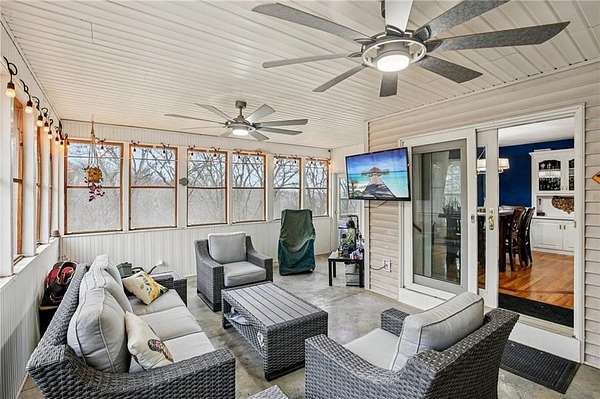 A sweeping grassy front yard and mature hardwoods set the scene for this custom-built walkout ranch on 11 acres m/l, offering the perfect blend of open space and wooded privacy. The main level features hardwood floors, an oversized kitchen with a large island and abundant cabinetry, and a vented sunroom filled with natural light. Bedrooms are generously sized, providing comfort and flexibility. Built with quality and efficiency in mind, this home includes geothermal ground-source heating and cooling, 2x6 exterior walls, and commercial-grade wiring for lasting durability and energy savings.