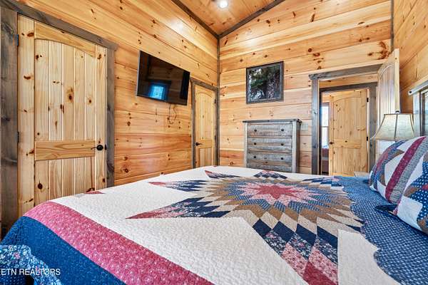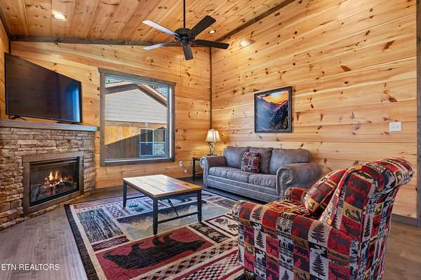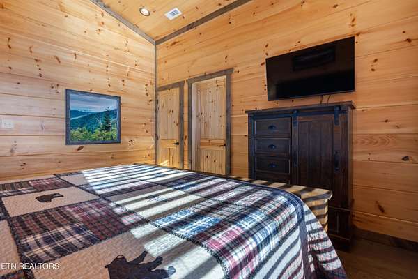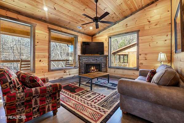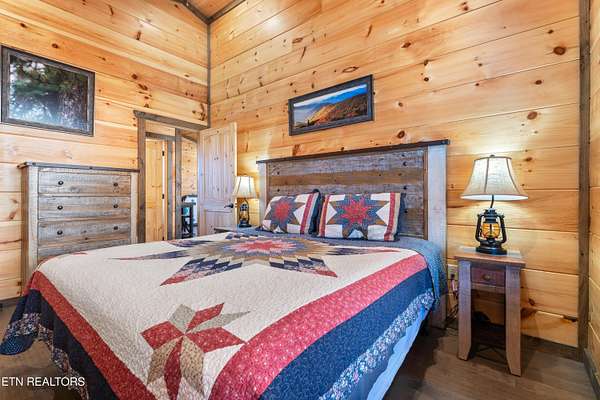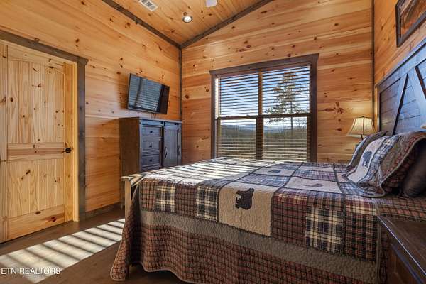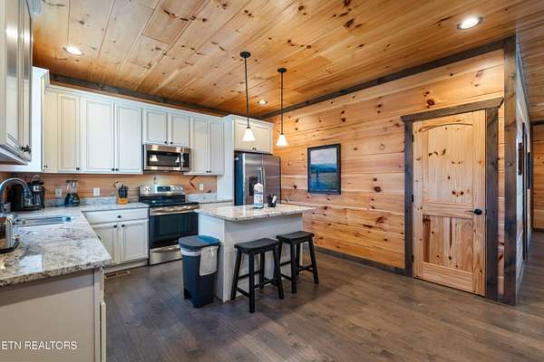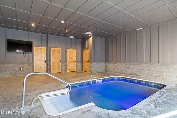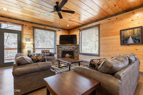 LUXURY CABIN WITH INDOOR POOL, HOT TUB AND GAME ROOM! LARGE 3 BEDROOM, 3.5 BATH Completely furnished. This is a beautiful modern cabin with rustic flair. Tastefully furnished and decorated throughout. Spacious open floor plan with living room and dining area just off the beautiful, fully furnished kitchen. Custom cabinetry and vanities. Granite countertops and stainless-steel appliances. The main floor hosts the master king suite, with a walk-in tiled shower and glass doors. Upstairs are 2 king master suites both with tub/shower. The lower level is where your beautiful, private pool is located along with a half bath. Two levels of large decking out back with a nice, wooded view plus a view of Mt. Leconte. All the bells and whistles you need for a successful short-term rental. Super location between Gatlinburg and Pigeon Forge. Come see it today!