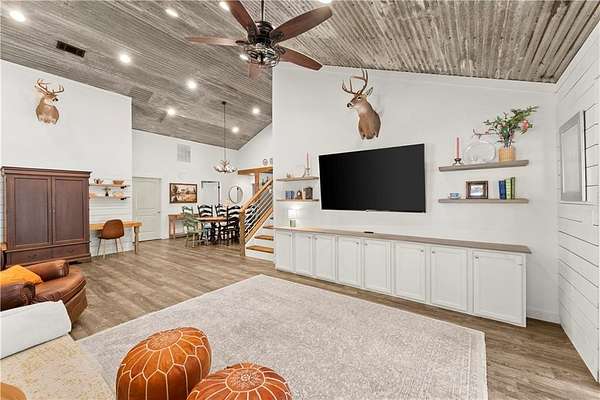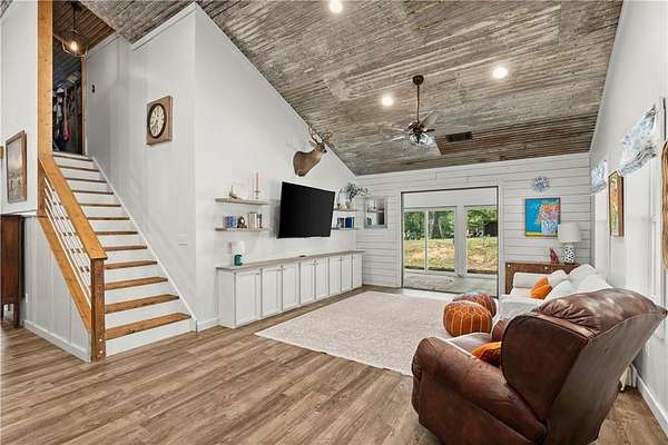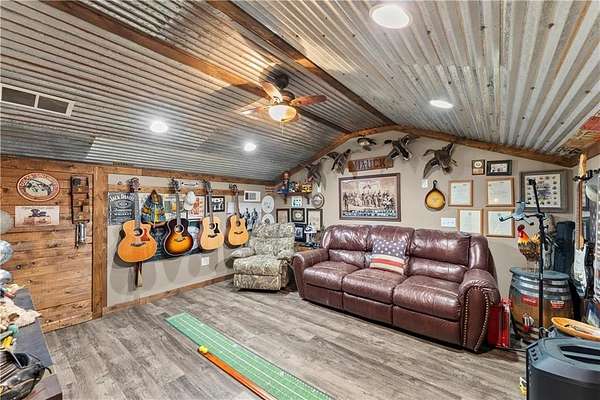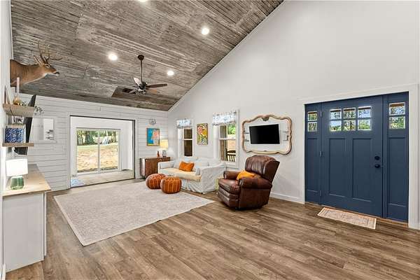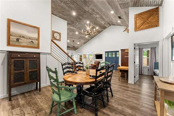Truly a show stopper and an outdoor lovers paradise! Welcome home to this amazing 15.8 acre property complete with a newer 4 bedroom, 2 bathroom barndominium. Featuring TWO fully stocked ponds, a creek, approximately 4 acres of fenced pasture (water line already running to it!), a small two-stall barn, and plenty of room for your farm friends! Enjoy the attached workshop on the backside of the home that is equipped with it's own 100amp circuit breaker. Pull up your RV to the parking pad: 30amp breaker and water hookup are already in place! The home itself is bursting with rustic charm! Move-in ready, all four bedrooms are on the main level with a cool bonus room/man cave on the second floor. The open-concept main level features high ceilings, natural light and a gorgeous sunroom where you can watch all the wildlife roam! The laundry room is just off the main living area and houses the tankless water heater. Enjoy the crisp fall air on your front or rear porches! Gated entry leads to a wrap-around driveway. The lot offers abundant privacy and is a mixture of grassy pasture and partial woods. Rural setting but so close to all the retail and dining you need! Quick and easy access to Hwy 411 and Hwy 75! Come tour this home today! *more trail cam pics available upon request