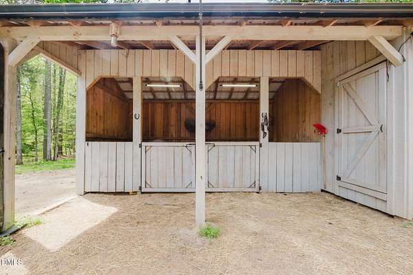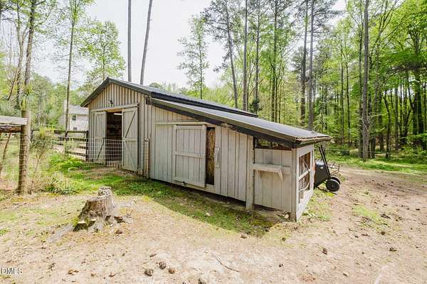 Nestled in the heart of Chapel Hill within the sought-after Chapel Hill/Carrboro school district, this one-of-a-kind hobby farm offers the perfect blend of modern comfort and rural charm. Set on nearly 6 acres, this thoughtfully designed property features 4 bedrooms and 2.5 bathrooms, built in 2018 with spacious, flexible living in mind. Inside, you'll find a large primary suite, two inviting gathering spaces on the main level, and an expansive loft ideal for a home office, playroom, or additional lounge area. The oversized screened porch provides a peaceful retreat to enjoy the surrounding landscape year-round. Outdoors, the property is fully equipped for hobby farming or equestrian pursuits, including a 2-stall barn with tack room, hay storage bay, and covered storage. Three fenced pastures, a chicken coop, raised garden beds, and a fenced backyard create endless opportunities for sustainable living and outdoor enjoyment. A converted shed with electricity and air conditioning currently serves as a private office, perfect for remote work or creative space. Conveniently located just 12 minutes to downtown Chapel Hill, this exceptional property offers the best of both worlds--privacy, space, and accessibility. A rare opportunity to own a truly special property in an unbeatable location.