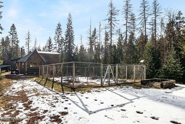 Tucked among the trees just a short drive north of Sandpoint, you'll find this classic log home sitting on 13 private acres. A circular driveway welcomes you to the property, where gorgeous mature trees provide privacy and sunny open spaces create usable ground and a bright, inviting setting. The property is comprised of two separate, legal parcels-the homesite parcel (6.742 acres) and an adjoining parcel (6.258 acres)-together create a private and versatile setting with room to roam and offer flexibility and long-term opportunity, whether preserving privacy, accommodating future family use, or exploring potential building options. The 1,500 sq ft home offers a warm cabin feel with exposed wood accents, comfortable living spaces, and a cozy wood stove for winter evenings. The beautifully remodeled kitchen blends modern updates with the home's North Idaho charm. The property is exceptionally well-equipped for hobby farming, storage, and projects with a variety of functional outbuilding Tucked among the trees just a short drive north of Sandpoint, you'll find this classic log home sitting on 13 private acres. A circular driveway welcomes you to the property, where gorgeous mature trees provide privacy and sunny open spaces create usable ground and a bright, inviting setting. The property is comprised of two separate, legal parcelsthe homesite parcel (6.742 acres) and an adjoining parcel (6.258 acres)together create a private and versatile setting with room to roam and offer flexibility and long-term opportunity, whether preserving privacy, accommodating future family use, or exploring potential building options. The 1,500 sq ft home offers a warm cabin feel with exposed wood accents, comfortable living spaces, and a cozy wood stove for winter evenings. The beautifully remodeled kitchen blends modern updates with the home's North Idaho charm. The property is exceptionally well-equipped for hobby farming, storage, and projects with a variety of functional outbuildings and established improvements. A spacious 36' x 22' three-car garage provides ample vehicle and equipment storage. A 24' x 16' wood shop with attached lean-to offers dedicated workspace and covered storage, complemented by a 32' x 15' pole barn and an 18' x 14' wood storage building. For gardening and homesteading, the property features a greenhouse and separate potting shed, both equipped with water and electricity, along with a new chicken coop. An established fenced 40' x 28' garden area includes producing apple and cherry trees along with blueberry and strawberry plantings. The property is served by two wells. Conveniently located just off Hwy 95 with easy year-round access, yet surrounded by quiet country living and natural beauty, the property is less than 20 minutes to Sandpoint, Lake Pend Oreille, and Schweitzer Mountain Resort. Come and see what North Idaho living is all about!