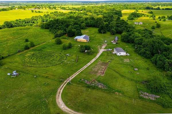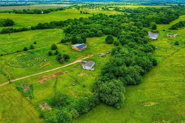 Just 65 miles northeast of downtown Dallas lies The Blackland Ranch, a truly distinctive property offering nearly 40 acres of wooded landscapes, open fields, and endless possibilities. This one-of-a-kind estate blends natural beauty with versatile spaces making it a perfect setting for creatives, entrepreneurs, visionaries, or anyone seeking a private retreat with expansion potential. Property Highlights are detailed below:
