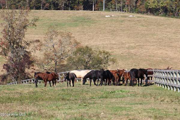 A remarkable 140-acre farm is available for sale in Central North Carolina, conveniently located just 30 miles from Pinehurst and 20 miles from Asheboro. This property has been operating as a registered AQHA Quarter Horse breeding facility for over 30 years. Offering the ultimate in privacy and tranquility, the farm features breathtaking sunrise and sunset views while still providing access to high-speed internet. The estate includes two horse barns with a combined total of 42 stalls, multiple water hydrants, and automatic waterers for convenience. The main residence is a stunning 4,353-square-foot, all-brick, two-story Southern Living Design home that showcases sweeping views of the surrounding landscape. It offers four bedrooms, three and a half bathrooms, a living room, dining room, family room, and a kitchen with a spacious breakfast area. The property also features a fully furnished guest cabin with three bedrooms and one bathroom, as well as a mobile home that includes three bedrooms and two bathrooms. This listing consists of three parcels: 767100183386, 766100974896, and 766100876689, totaling 140 acres.