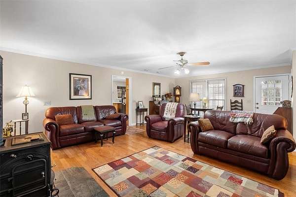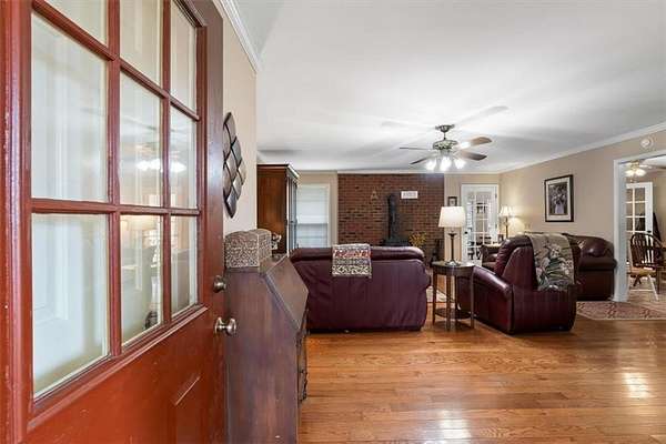 This one-of-a-kind property offers over nine private acres complete with a peaceful, private pond stocked with bream and bass and is ideal for a mini farm or self-sustaining homestead lifestyle. Tucked away down a long private driveway, this property provides the privacy, functionality, and outdoor living space that today's buyers are searching for. The primary residence features 3 bedrooms and 2 full bathrooms with hardwood flooring throughout the entire home. The spacious family room includes a cozy wood burning stove, creating the perfect gathering space. The oversized kitchen offers ample room for cooking and entertaining, and a separate sunroom provides additional living space filled with natural light. The home has been meticulously maintained and thoughtfully updated, including a NEW roof installed in 2025 and a septic tank and field lines replaced approximately three years ago. In addition to the main home, the property includes a separate guest cottage complete with 1 bedroom and a full bath, offering flexibility for multigenerational living, guests, rental income potential, or a private home office. There is also an additional garage and a large storage building for equipment, tools, hobbies, or farm use. Outdoor features include blueberry bushes, a peach tree, a chicken coop, and an additional fenced area ideal for goats or other small livestock. Whether fishing in your own stocked pond, collecting fresh eggs in the morning, or creating a fully self-sustaining setup, this property offers the space and infrastructure to make it happen. This is a rare opportunity to own acreage, privacy, income potential, and functional farm space all in one exceptional property.