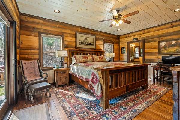 Experience upscale mountain living in the prestigious gated community of Shepherds Ridge. Easily accessible via all-paved roads, this beautifully maintained mountain-modern home sits on a gentle, wooded lot with scenic mountain and forest views. Blending rustic charm and contemporary design, the home features live edge siding, shake accents, and natural stonework for timeless curb appeal. Inside, the open floor plan highlights a custom gourmet kitchen with high-end finishes and stainless appliances, flowing seamlessly into a spacious living and dining area centered around a stunning stacked stone fireplace. Step outside to a private outdoor living space with another fireplace--perfect for relaxing or entertaining under the stars. Ideally located near downtown Blue Ridge, Lake Blue Ridge, and the Toccoa River, this property offers the perfect balance of luxury, comfort, and convenience. Whether you're seeking a full-time residence or weekend retreat, this home delivers refined mountain living in one of North Georgia's most desirable communities.