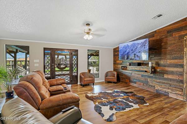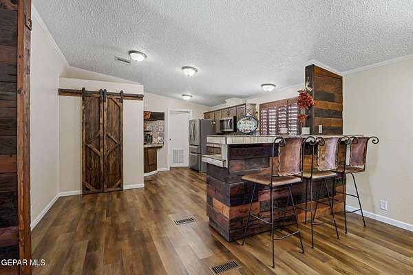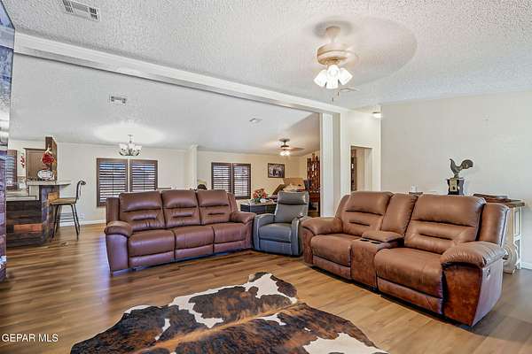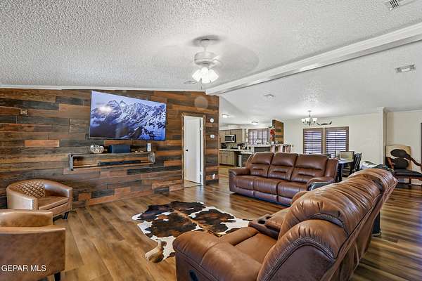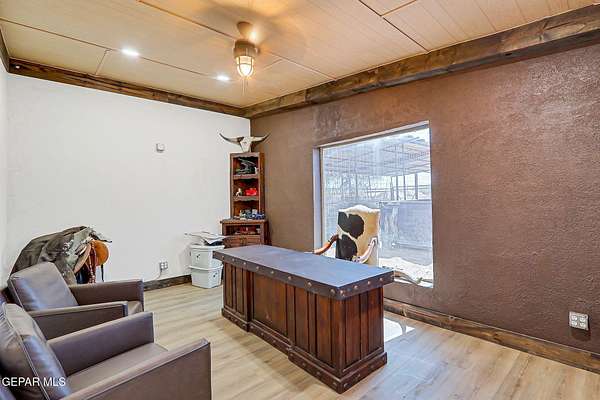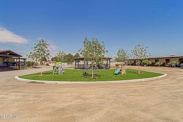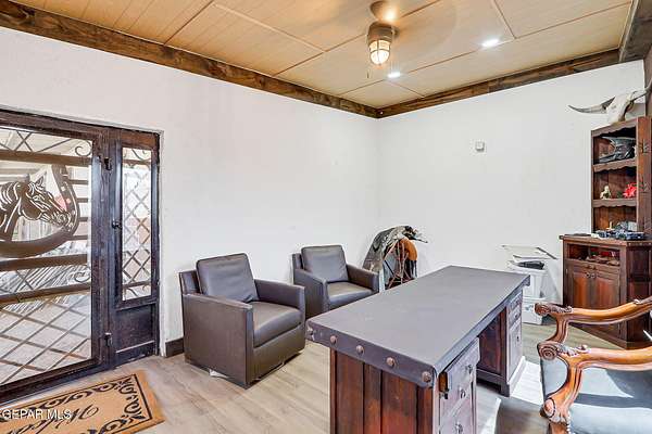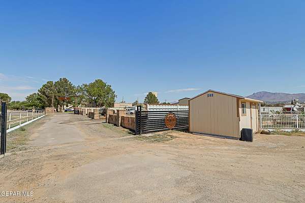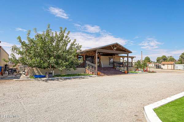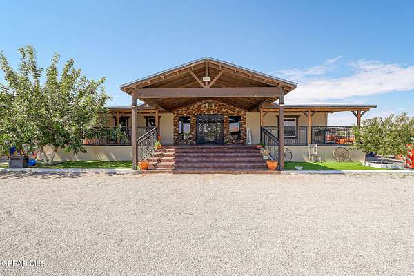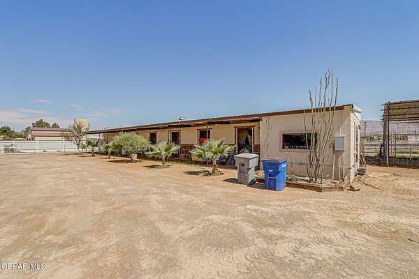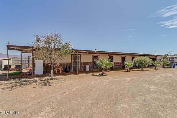 Incredible 2.04 acre equestrian estate in Sunland Park, perfectly positioned on the NM/TX state line. Enjoy the benefit of low New Mexico property taxes while living just moments from Texas. This unique property is fully equipped with amenities, including: * 8 Stall Horse Barn: Beautifully designed with cantera stone details, front/back shade, and ample space for training. * Detached Party Room/Man Cave: An impressive 1,500 sqft entertainment space with a stunning veneer stone fireplace, completely separate from the main home. * Massive Workshop: A 1,400 sqft storage building, well-designed and powered with high-voltage electricity for any hobby or business. * Remodeled Residence: A 3bedroom, 2bath manufactured home featuring a full remodel, an extended front porch, and commercial-grade stucco. The property is secured by two electronic gates and features 60 mature trees, creating a private and serene environment. * Private Office: A dedicated space perfect for managing your business. Call Today!