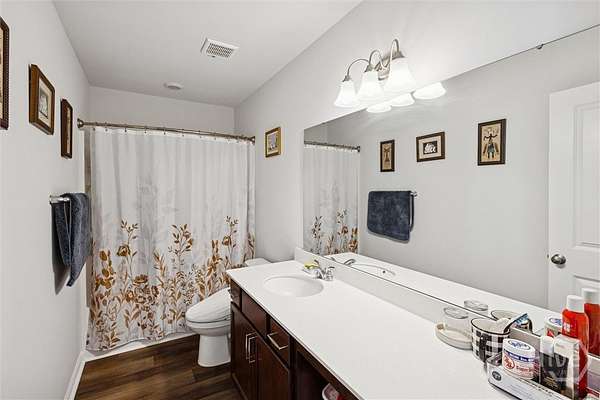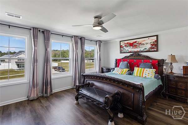 Midway Acreage Retreat! Stunning 2,360 sq. ft., 5 Bed / 3 Bath two-story home set on a private 1.72+ acre lot featuring serene pond views. Includes a highly desirable downstairs in-law suite. The main floor boasts an open concept with dark wood-look flooring. The Gourmet Kitchen features dark wood cabinets, light granite counters, and a large island. Upstairs offers an expansive Primary Suite with a full ensuite bath (double vanity, separate tub/shower) and a bright open loft for a second living area. Outdoor living is key: enjoy the fully fenced yard, storage shed, and greenhouse. Complete with a two-car garage. This home perfectly blends flexible living space with private acreage comfort.