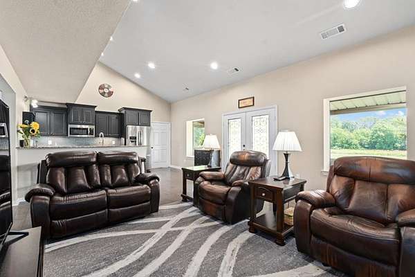 Welcome to Serenity Acres, nestled in the picturesque Van Zandt County. This agriculturally exempt property spans over 69 scenic acres, offering the tranquility of rural living coupled with the ease of access to Dallas, Tyler, and Mabank for all your shopping and entertainment needs. This secluded residence is set off a winding road, providing a beautiful journey to the house and ensuring both privacy and seclusion. The property is surrounded by towering Texas timber, creating a stunning backdrop. The land features varying elevations and an abundance of character. This property offers the best of both worlds with an inviting 1800+/- square feet of finished space for the residence, which includes a charming three-bedroom, two-bathroom barndominium, and an attached garage or workshop with over 1400+/- square feet of ample storage area. This additional space is perfect for hosting large gatherings or events, making it ideal for entertaining. The garage or workshop is equipped with three large roll-up doors, perfect for storing all your farm equipment. The home boasts a well-designed open floor plan, ensuring a seamless transition from the living room into the kitchen. The kitchen is outfitted with granite countertops, stainless steel appliances, a gas stovetop and tankless water heaters. Spend your evenings gazing at the stars over the charming country landscape from the covered patio. Additionally, there is a 30X40 shop on the property with an overhead door, offering even more storage space. A creek meanders through the property, attracting an abundance of wildlife, making it an excellent location for hunting or wildlife observation. Great opportunity to create ATV/walking trails in the trees, with a pond on the property. There is also a private gun range set up on the property. This versatile space would make a great retreat property, or you could finish out the attached shop for more living space--the choice is yours. You won't want to miss this opportunity.