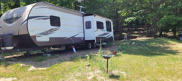 Just bring your toys and clothes! Whiskey Creek Lot to enjoy nature or bring the sxs and dirtbikes! Sale includes a neat and clean 2016 Wildwood Camper. Lot 176 has a deep high pressure well, septic system, 200-amp service with 2 hookups for campers. There is a 10x16 shed with power, a retaining wall with a great spot for campfire and another camper or? There is a 2nd 100-amp power hook up as well. This land is just feet away from 1000's of Acres of Manistee National Forest property. Whiskey Creek Community has 109 acres of multi-use trails. Beach access with great fishing, and a community building available to all members. Visit for more information
