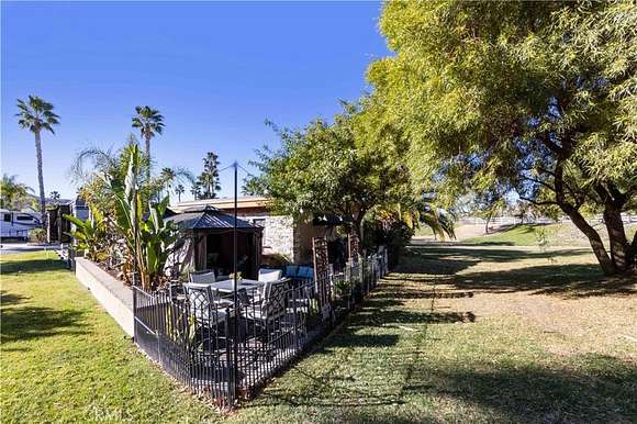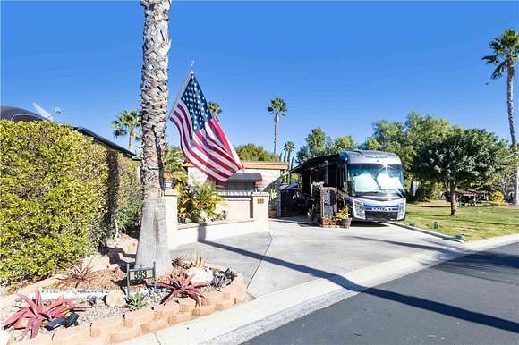 Simply Amazing Oversized 4190 sq ft Corner Property with approx 1178 sq ft Buildout that is Crazy Gorgeous. Exterior is Stone, Synthetic Stucco and Cedar with Motorized Sunbrella Fabric Shades, 2 Awnings, 3x30 Raised Garden Bed, Patio with Inset Pavers and a 32"x20' Concrete Countertop with Storage, Gazebo and Exterior LED dimmable Lights. Inside has Reverse Osmosis Water Filter, Kohler Stainless 18x36 Farmhouse Sink, Brushed Nickel High rise Flex Faucet, Spectacular White Kraftmaid Shaker Beadboard Soft Close Cabinets, 28' of Total Counter Space with Amazing Marble Backsplash, Gorgeous 4x9 Custom Epoxy Island with Viking 6 Burner Cooktop, KitchenAid Stainless Dishwasher & Stove and a LG Refrigerator Inverter Linear with Water and Ice in Door. Separate Laundry Room with 2x7.5 Custom Epoxy Counter and Maytag W&D and In Wall Ironing Board and Neo Angle 6x6 Pantry. Dining Room Buffet Built-In 14' with 6 Glass Upper Doors, 8 Bottom Doors and 4 Drawers & 2 Built-In Storage areas for extra hanging room. Awesome Grey/White 9" Waterproof Laminate Flooring Throughout the whole Buildout with 55 LED Can Lights some on Dimmers to Show it off, Gorgeous Crown Molding everywhere you look and 7" Baseboards make it Pop. Also 2 Mini-splits HVAC units Included in Rancho California RV Resort is a 14 hole Executive Golf Course that is free for owners, 5 Pools and Jacuzzi areas, Tennis Courts, Pickle Ball Courts, Laundry Rooms, Dog Park, Horse Shoe Lawn, Club House, Hiking Trails, and Restaurant all inside Gated Community that is Guarded 24/7. You can live here or rent your space. Peace and quiet serenity all just 25 minutes from Temecula Wine Country. No age restrictions. Come on over and check this hidden gem of a place out...
