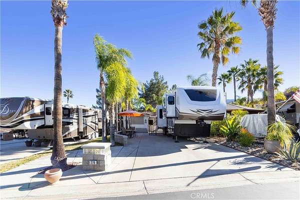 Beautiful Fully Enclosed +-630 Sq Ft Buildout with Quality Super Construction - Spun Fiberglass and Green Wall Drywall for extra protection from ware and tear. Back Yard is all common area and ready for a quick game of bag toss or frisbee in a Huge Grassy Knoll with a perfect sitting area to watch the games. Lots of Trees for Shade and Privacy Hedges for great curb appeal. Inside this beauty is 3 living areas, Large Family Room, Dining Room and Kitchen with full fridge, Stove/Oven, Storage and counter top microwave and toaster oven. Floors are easy to clean tile and the roof is Clay Tile meant to last. Included in Rancho California RV Resort is a 14 hole Executive Golf Course that is free for owners, 5 Pools and Jacuzzi areas, Tennis Courts, Pickle Ball Courts, Laundry Rooms, Dog Park, Horse Shoe Lawn, Club House, Hiking Trails, and Restaurant all inside Gated Community that is Guarded 24/7. You can live here or rent your space. Peace and quiet serenity all just 25 minutes from Temecula Wine Country. No age restrictions. Come on over and check this hidden gem of a place out...