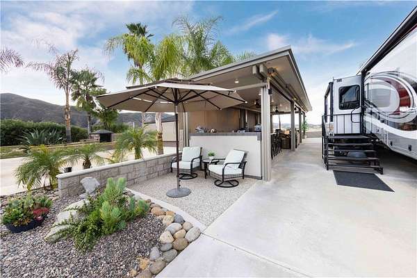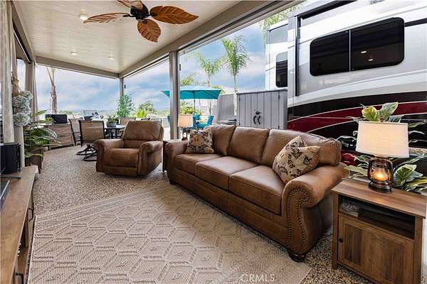 Wonderfully Meticulous Lot, Perfectly Color Coordinated Screens, Allumawood and Pebbletec. Crowd Favorite, you will LOVE this Site for all that it has to Offer the Outdoor Living Experience. This Large Lot has Gorgeous Counter Tops, Awesome Appliance and set up for Four Living Areas to Enjoy. You get Washer & Dryer, Oven, Dishwasher and Frig all set up in the Kitchen. The Family Room, Dining Room and Patio has the perfect Size for you and your Guest to Enjoy the SunRises and Sunsets. This is a Super Clean Well Appointed Lot for Amazing Entertainment and Enjoyment. Included in Rancho California RV Resort is a 14 hole Executive Golf Course that is free for owners, 5 Pools and Jacuzzi areas, Tennis Courts, Pickle Ball Courts, Laundry Rooms, Dog Park, Horse Shoe Lawn, Club House, Hiking Trails, all inside Gated Community that is Guarded 24/7. You can live here or rent your space. Peace and quiet serenity all just 25 minutes from Temecula Wine Country. No age restrictions. Come on over and check this hidden gem of a place out...
