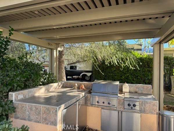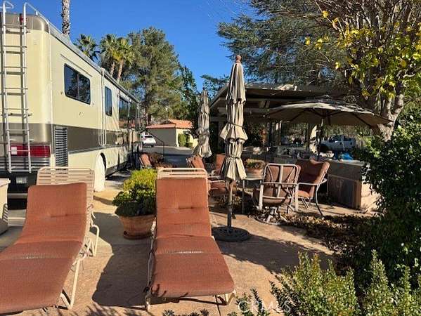 Discover your perfect retreat on a truly expansive lot offering the ultimate in outdoor luxury. This standout space features a built-in barbecue, a washer and dryer, a full kitchen with an oven, three convenient islands, and a refrigerator-freezer combo. Enjoy the shade of an Alumawood cover and pick fresh lemons right from your own tree. Step outside to a spectacular setting with panoramic views: a gorgeous waterfall, a huge grassy knoll, a large pond, and a prime view of the golf course's fourth hole. Whether you're relaxing, entertaining, or simply soaking in the surroundings, this lot is a rare gem. Come see what makes this location a standout in Rancho California RV Resort!