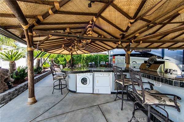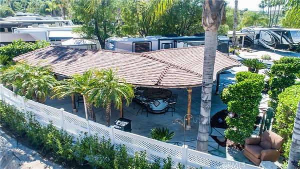 Entertain, Entertain Entertain, this property has a ginormous custom built Island with full cover and plenty of seating with two different areas for guests. You will love the finishing touches throughout the site. They thought of everything while they have been living on the property for years. The extra considerations with 2 parking areas for golf carts, Sego Palms all over and set on sprinklers for a low maintenance but beautiful lot. A few add-ons they added to the site: Built-in BBQ, Washer & Dryer, 2 mini refrigerators, stereo system, outdoor TV, water softener, even artificial turf. Included in Rancho California RV Resort is a 14 hole Executive Golf Course that is free for owners, 5 Pools and Jacuzzi areas, Tennis Courts, Pickle Ball Courts, Laundry Rooms, Dog Park, Horse Shoe Lawn, Club House, Hiking Trails, and Restaurant all inside Gated Community that is Guarded 24/7. You can live here or rent your space. Peace and quiet serenity all just 25 minutes from Temecula Wine Country. No age restrictions. Come on over and check this hidden gem of a place out... Financing Available...