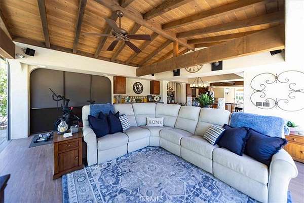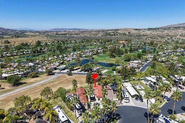 Site 291 on Pueblo Mesa is one of the most beautiful properties in the resort, located in the exclusive Class A Motorhome Super C only section. This premium pull-in site offers sweeping elevated views across the resort and showcases stunning mountain scenery, creating a truly serene and picturesque setting. The property features a spacious outdoor layout with a large laundry area conveniently positioned just in front of the RV, along with a residential-style washer and dryer neatly housed within cabinetry. Two separate patio areas provide ideal spaces for relaxing or entertaining, perfectly positioned to take in the tranquil pond, breathtaking sunsets, and surrounding mountain views. The fully finished casita is thoughtfully constructed with a tile roof, smooth stucco exterior, rain gutters, wall lighting, decorative accents, and double screens on every opening. French drains are installed to efficiently manage rainwater. Inside, a full-length tiled floor runs throughout the casita, enhancing both style and durability. At the front, a versatile bonus room provides the perfect space for an office, craft room, or hobby area. The well-appointed kitchen is a chef’s delight, featuring a full-size refrigerator, dishwasher, range, induction oven, microwave, large sink with hot water, garbage disposal, and abundant wood cabinetry. The spacious dining area includes a beautiful table that comfortably seats eight, highlighted by a custom chandelier that perfectly complements the interior design. The inviting great room offers a wet bar complete with an under-counter beverage cooler and ice maker, along with a large flat-screen TV positioned above a portable electric fireplace—ideal for relaxing or entertaining. Privacy hedges on both sides of the property enhance the peaceful atmosphere, making this an exceptional retreat within the resort. This is a rare opportunity to own a highly upgraded, view-oriented site in one of the most desirable locations in Rancho California RV Resort. Financing available. Schedule your private showing today.