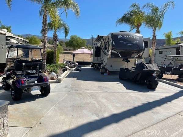 Extra-large RV site featuring extended concrete designed for entertaining, with ample room for your RV and outdoor living. The property backs to a wide open grassy field, offering peaceful views, (potential golf course in open area) added privacy, and space to relax or play. There's plenty of room for extra vehicles and a golf cart, along with a large shade cover perfect for hosting friends and guests. A built-in sitting wall with accent lighting adds warmth, ambiance, and comfort for evening gatherings. Ownership at Rancho California RV Resort includes access to a 14-hole executive golf course (free for owners), five pools and jacuzzi areas, tennis courts, pickleball courts, laundry rooms, dog park, horseshoe lawn, clubhouse, and scenic hiking trails. The community is guard-gated and monitored 24/7, with no age restrictions. Enjoy peace, quiet, and open space--all just 25 minutes from Temecula Wine Country. Live here full-time or rent your space. Financing available. Owner financing also available... Come see this hidden gem for yourself.