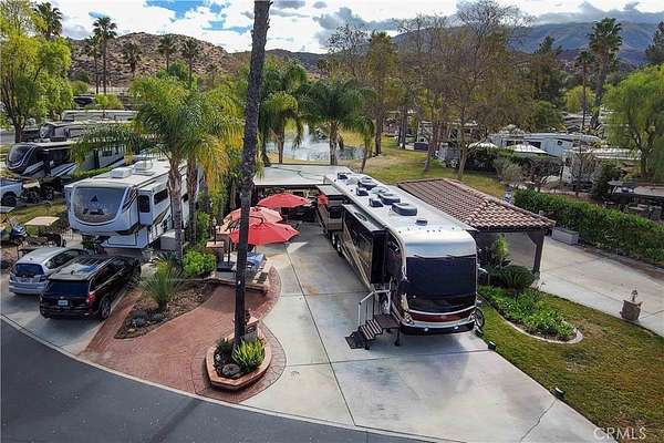 One of the best water views in the resort, a must see when visiting. Full Gorgeous Allumawood Cover overlooking back yard and Pond with Fountain, Gargantuan Family Room with Furniture included, Fireplace, TV Nook and sitting wall for extra visitors. The BBQ Island has a great patio and sitting area to enjoy company and lots of room for food or games. Huge Stained concrete area for Golf Cart parking or extra car. Looking for an RV Resort lot with space and privacy then come check out this perfect location nestled among the foothills of Palomar Mountain, minutes from Temecula Wine Country as well as a convenient location to Palm Springs in just under an hour, 1.5 hrs to San Diego and 1 hr to the beach in Oceanside. Rancho California RV Resort provides amenities such as a 14 hole Executive PAR 3 Golf Course (no fees for owners), 5 Pools/Jacuzzis, Tennis courts, Pickleball courts, Dog park, Club house, hiking trails, Horseshoe lawn and onsite grocery market. The resort is guard gated with no age restrictions. Monthly HOA fee includes use of the golf course, amenities, trash pickup at lot, water/sewer and common area maintenance. If you are considering a premier Southern California RV destination, don't miss out on visiting Rancho California RV Resort - Financing Available, schedule a showing today!