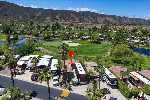 Gorgeous custom built fully enclosed with shade screens home on the Golf Course with sunsets to die for. Huge build-out with laundry room, storage and huge family room, dining room and Kitchen, 5 electric power screens, and gorgeous crown moldings with soffits. Kitchen is dialed in with residential wood cabinets, tile back splash and gorgeous counters with oven, stove top and microwave. Dining room even has a chandelier and expandable table and wood colored floors. Ceiling fans are a perfect accent to this decor and style. Patio is set up for those late night dinners overlooking the sunsets and golf course and pond with matured landscaped sego palms, low maintenance. Owner will carry paper. Right around the corner from main clubhouse and pool. Rancho California RV Resort provides amenities such as a 14 hole Executive PAR 3 Golf Course (no fees for owners), 5 Pools/Jacuzzis, Tennis courts, Pickleball courts, Dog park, Club house, hiking trails, Horseshoe lawn and onsite grocery market. The resort is guard gated with no age restrictions. Monthly HOA fee includes unlimited use of the golf course, amenities, trash pickup at lot, water/sewer and common area maintenance. If you are considering a premier Southern California RV destination with convenient access to San Diego, Palm Springs and SoCal beaches, don't miss out on visiting Rancho California RV Resort. FINANCING AVAILABLE