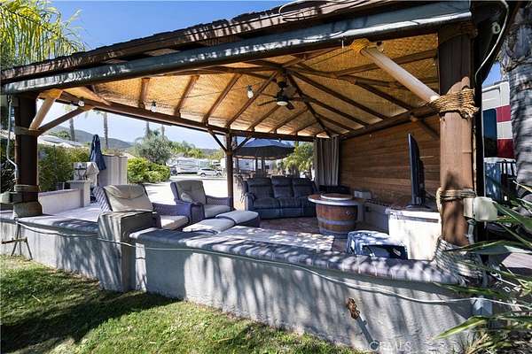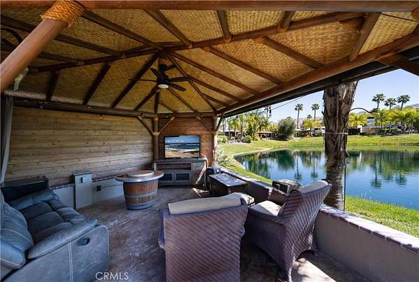 One of the best waterfall and golf course views in the resort! This exceptional waterfront property offers stunning scenery overlooking the pond, waterfall, and golf course, with beautiful sunrise views and a front-row seat to watch early morning golfers on hole #10 green. Enjoy outdoor living at its finest with a fully screened-in, shaded casita build-out—perfect for relaxing in comfort year-round. A second shaded entertaining area features a built-in BBQ, cooktop, refrigerator, and a spacious island, creating an ideal setup for hosting family and friends. The layout offers generous space for entertaining while taking full advantage of the incredible views. This lot includes full RV hookups and is conveniently located near Pool #5, the bathhouse, laundry facilities, and the main clubhouse for easy access to resort amenities. Located within Rancho California RV Resort, a gated and 24/7 guard-controlled community offering resort-style amenities including a 14-hole executive golf course (free for owners with unlimited use), 5 pools and multiple jacuzzi areas, tennis courts, pickleball courts, dog park, horseshoe lawn, laundry facilities, hiking trails, clubhouse, on-site restaurant, and market. HOA includes water, sewer, trash, and common area maintenance. Bring your Class A, Super C, or 5th wheel and experience resort-style living at Site 516—an outstanding opportunity to own one of the most desirable waterfront view properties in Rancho California RV Resort. Financing available.
