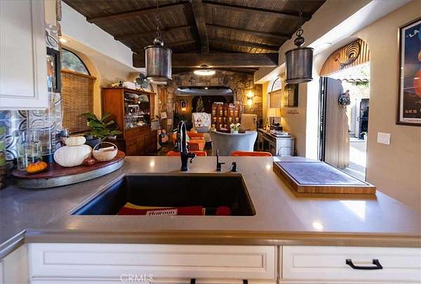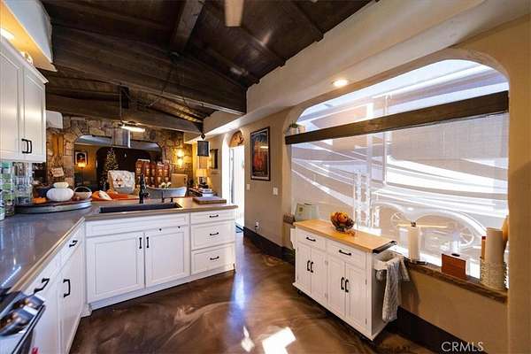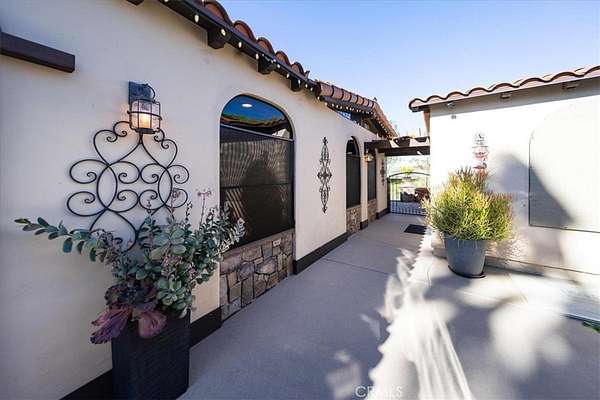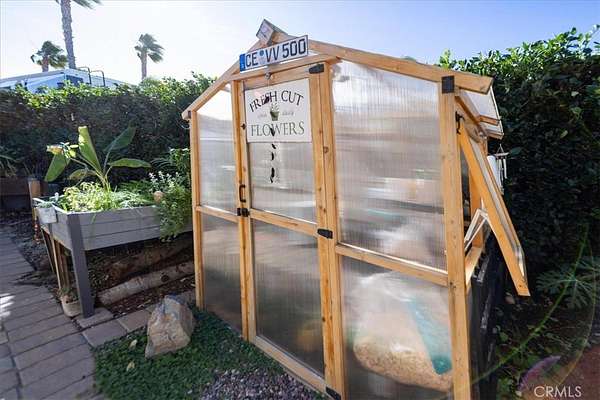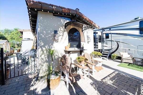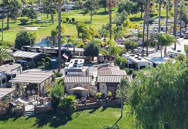 Rancho California RV Resort boast of many amenities for the owners. The Resort is a gated community with 592 sites, a Golf Course, (2) Tennis Courts, (6) Pickle Ball Courts, (2) Horseshoe Pits, (2) Bocce Ball Courts, Fishing Lake, Laundry, Bathrooms & Showers, Dog Park as well as a Cafe and Market This oversized site with a huge building is located in the 5th Phase and is totally private. The over 900 square foot stucco building has 3 rooms all covered by a solid roof, beautiful wood & beamed ceilings, fans and recessed lighting. Screens all around, including screen doors to keep it cozy and dry. As you enter the property you will notice right away how much room there is even with a 45' Motorhome to allow 2 cars at the front of the driveway and additional golf cart parking. The kitchen is complete with all the conveniences you would want in a home. Full size stovetop and Microwave/Convection oven, refrigerator and freezer, large sink, beautiful countertops, not to mention large amount of storage throughout. Just on the other side of the kitchen is a large dining area for full size dining table and chairs for good size group gathering. Just past the dining room is the living room with plenty of room for some comfortable furniture to relax in as well as a good size TV. Step out to the back and notice stone pavers in a private patio area for BBQing and comfort. Also in the back is a utility building that can be used as an office, storage are or what ever fits your need. Truly ready for your personal touches.