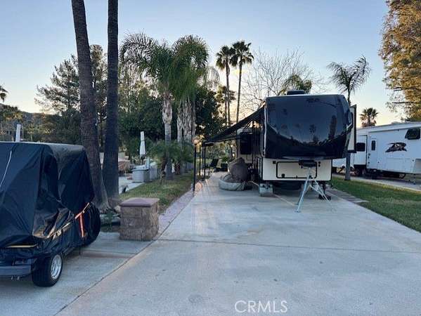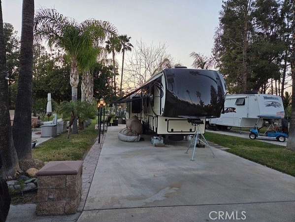 Premium lot in the highly desirable Rancho California RV & Golf Resort offering an exceptional location next to the owner’s pool with stunning water and golf course views and beautiful sunset skies. This well-positioned lot features a custom sitting wall with firepit, creating the perfect outdoor space to relax, entertain, and enjoy the peaceful resort setting. The spacious pad provides ample room for your RV along with additional space to spread out and enjoy outdoor living. Conveniently located close to the community entrance for easy access to the resort’s restaurant, market, and pool amenities.