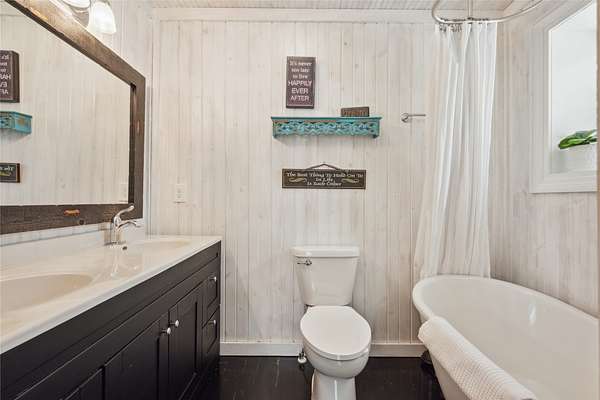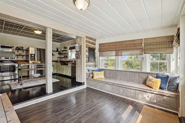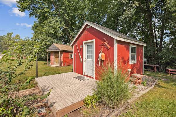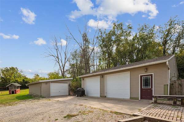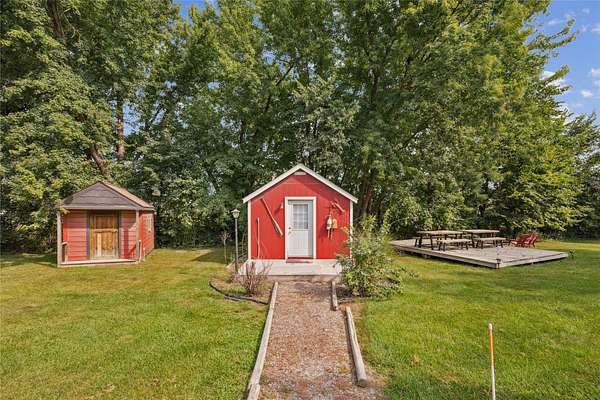This beautifully updated 1920 Log Cabin sits at the start of the Covered Bridges Scenic Byway and is nestled on 1.75 acres of yard and timber just 10 minutes south of the West Glen area of WDM. The home features 1 large bedroom suite with a sitting area, double closets, and a bathroom with a soaker tub for relaxing and double vanity. The kitchen features butcher block counters and stainless steel appliances. An open dining room, large living room w/ built-ins, and mud room complete the main floor. The lower level has a non-conforming bedroom with egress window, a large family room plus a 3/4 bath and laundry room. The peaceful outdoor space includes a fire pit and separate deck, 2 small sheds with electricity (1 is a fun 1-room cabin) and 2 large detached garages with room for a workshop and 4 parking stalls. The home has been operated as successful Airbnb for years. All information obtained from seller and public records.