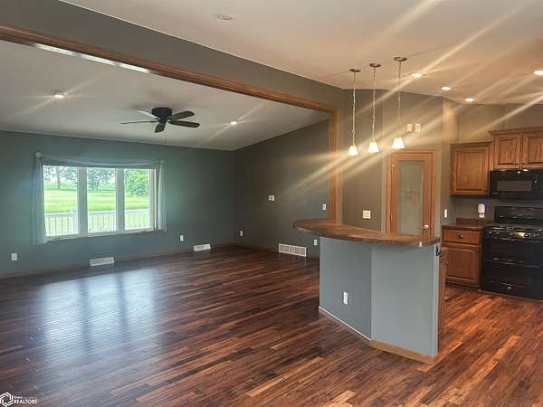 Welcome to this beautiful acreage on a hard surface road. This custom built, extremely well maintained 5 bedroom, 3 bathroom ranch home home offers over 3500 square feet of finished living space. The main floor features spacious living areas, a kitchen with ample cabinetry, counter space, and walk in pantry and the living room is perfect for gathering. Enjoy a built in office space right off the living area. The attached 3 car garage provides generous storage, with a door opening to the back of the house. Enjoy the beauty and peace on over 7 acres. Don't forget the nice out building for all our outdoor storage. This one of a kind property combines ideal privacy and country charm with the convenience of in-town living. Do not miss this unique move in ready opportunity!