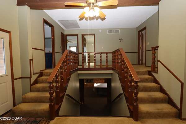 Property Overview This rare 2.6-acre property is conveniently located near the Duquesne and Joplin city limits, providing both privacy and opportunities to observe local wildlife thanks to its partially wooded landscape. Main Residence Features The split-level brick home is designed with a low-maintenance exterior and includes a fenced yard, perfect for pets or children. A large deck offers ample space for outdoor relaxation and entertaining. Inside, the home features five bedrooms and a spacious kitchen equipped with an island and pantry, making meal preparation and storage simple and efficient. There are two laundry areas for added convenience, as well as two and a half bathrooms to accommodate family and guests. Two living rooms provide plenty of space for gatherings or quiet downtime. The home is equipped with central heating and air conditioning, along with well and septic systems. Additionally, the property includes both attached and detached two-car garages, which can also serve as workshop areas for hobbies or projects. Cottage Details In addition to the main residence, the property includes a charming brick and vinyl cottage. This separate unit features one bedroom and one bathroom, providing a comfortable and private living space. The cottage is equipped with a kitchen and a living area, making it suitable for independent living or guest accommodation. The cottage also boasts a one-car attached garage, offering convenience and additional storage. It has previously served as an AirBnB rental or a mother-in-law suite, demonstrating its versatility for various uses. Additional amenities include a utility area for laundry and household tasks, as well as central heating and air conditioning to ensure year-round comfort. A decorative hearth offers an extra heating option, adding both warmth and character to the cottage.
