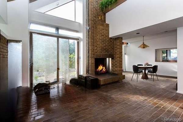 Welcome to 4554 Mystic Hills Circle, a truly exceptional residence inspired by the design legacy of Frank Lloyd Wright. This 4,700+ square foot home, crafted by architect Lawrence Brinks--an apprentice and mentee of Wright--offers architectural artistry at every turn. Nestled on 2.5 beautifully landscaped acres, the home is accessed by a tree-lined drive that sets the tone for the serene surroundings. Inside, custom angles and vaulted wood ceilings create dramatic spaces, complemented by rich-colored concrete block flooring and textured brick walls in the expansive living room, dining area, and kitchen. Large, thoughtfully placed windows flood each room with natural light and offer sweeping views of the property. A unique catwalk overlooks the grand living space, adding to the home's one-of-a-kind character.