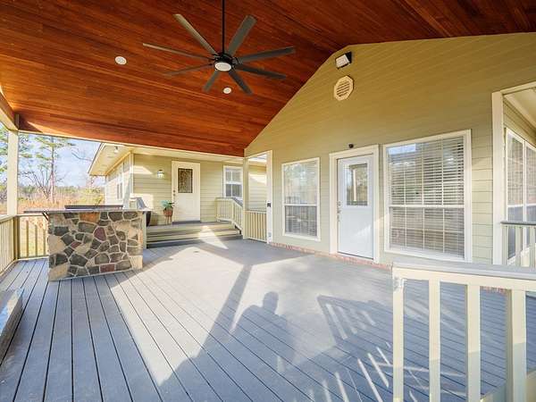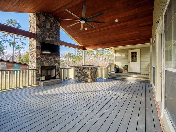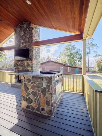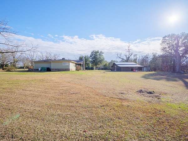 Situated on 8.4 acres in Lowndes County, this well-maintained property offers space, privacy, and added flexibility with Office-Institutional (O-I) zoning, allowing for a range of potential future uses. Buyer to verify permitted uses. The home features an open living and dining area anchored by a fireplace, creating a welcoming space for everyday living and entertaining. An additional den/family area provides flexibility for a home office, flex space, or secondary living area. The kitchen offers well-kept cabinetry and stainless steel appliances, with a breakfast area extending naturally from the kitchen for casual dining. The primary suite includes a spacious primary bathroom with double vanity, soaking tub, and walk-in shower. Outdoor living is a standout feature, highlighted by a covered back patio with a stone fireplace, ideal for relaxing or entertaining while overlooking the expansive acreage. The property also includes a barn with electricity, offering excellent storage, workshop, or functional space. Conveniently located with easy access to Valdosta, Hahira, and I-75, this property combines acreage, outdoor living, and zoning versatility in one unique offering.