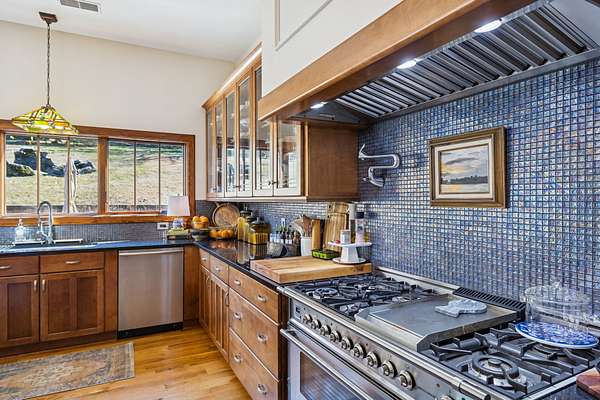 - Dishwasher, Disposal, Double Oven, Gas Oven, Gas Range, Ice Maker, Microwave, Refrigerator, Stainless Steel Appliance(s), Trash Compactor, Water Purifier