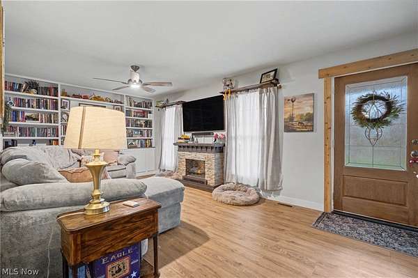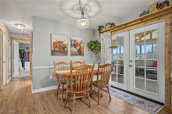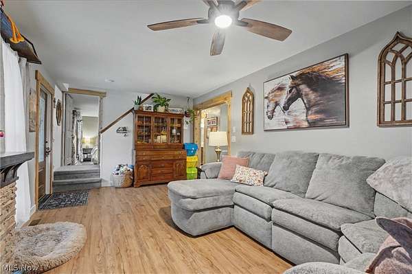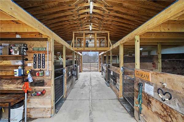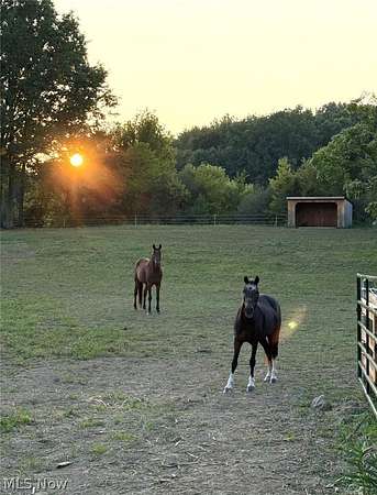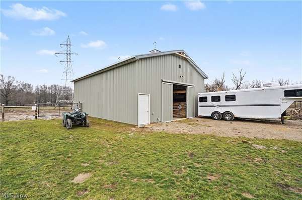 4556 Rootstown Road --- 8.67 Acres in Rootstown Township with a Horse Barn, Pasture & Outbuilding. This thoughtfully renovated 3-bedroom, 2-bath homestead with the property extending back toward the Lexington Place neighborhood, a rare blend of privacy, open land, & modern updates. Well suited for equestrian or hobby farm living, the property features a newly built 32x42 five-stall horse barn with raised foundation, concrete floors, drainage, hay elevator, lofts, fans & cupolas, a 10x14 run-in shelter with metal roof located within the pasture, along with a 40x32 (4+ car) detached pole barn garage with oversized doors & 14-ft ceilings, chicken coop, and an additional 10x16 storage barn. Inside, the home feels warm & inviting with an expansive covered front porch & numerous updates including new LVP flooring & carpet, finishes & fixtures. The living room features built-in bookshelves, while the kitchen was remodeled with new cabinetry, backsplash, countertops & appliances. A screened-in sunroom adds additional living space & overlooks the backyard. The main level includes a newly created primary suite with oversized custom walk-in closet & island, along with a full bathroom on the main floor, while two additional bedrooms & another full bath are located upstairs. The home also offers a full basement with laundry hookups & plenty of storage. Outdoor living includes a poured concrete patio, a relaxing hot tub with cedar pergola, & scenic views of the surrounding acreage. Major improvements in recent years include full window replacement, upgraded 200-amp electrical service, a heat pump HVAC system, well pump, water softener system, pressure tank, hot water tank with booster & roof replacement. Full update list is available! Opportunities in Rootstown offering this combination of acreage, equestrian amenities, & modern updates rarely come available. Your opportunity to enjoy country living with convenient access to nearby shopping, dining & everyday amenities awaits!