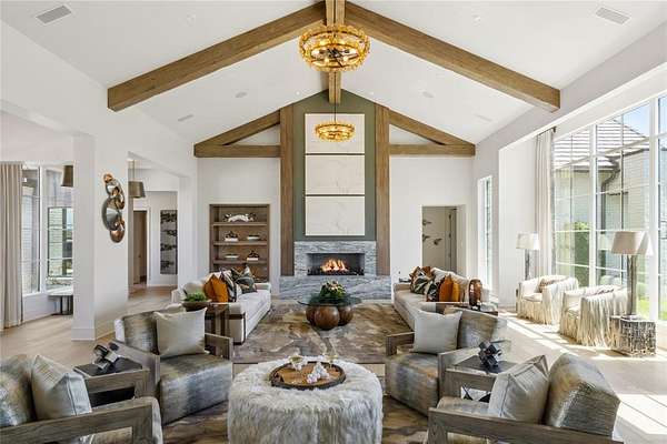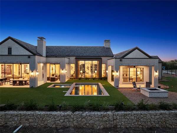 Perched atop a scenic hill in Fort Worth's prestigious Montrachet neighborhood, this stunning single-story residence draws inspiration from the rustic elegance of Napa Valley. Designed to capture panoramic views of downtown Fort Worth, the home seamlessly blends refined architectural elements with natural textures and warm, vineyard-inspired tones.