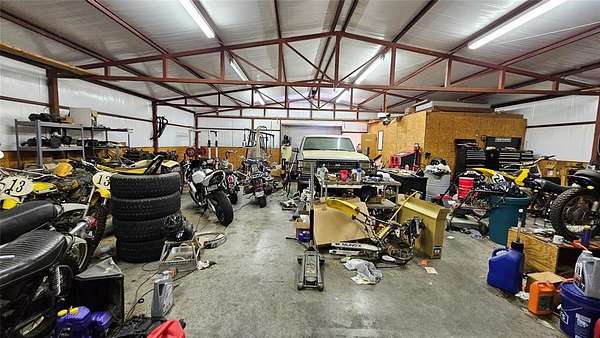 3-bedroom, 2-bath ranch-style home featuring a desirable split-bedroom layout. Spacious living area with vaulted ceiling and statement wagon-wheel light fixture creates an inviting atmosphere. The kitchen and dining areas offer newer vinyl plank flooring, granite countertops, and tile backsplash. Covered front and back porches span the full length of the home, providing excellent outdoor living space. The backyard includes an in-ground pool and a covered cabana with bar area, offering potential for a full outdoor kitchen. Property also features an approximately 2,000 sq ft insulated shop with 110 & 220 electric, office space, and bathroom--ideal for hobbyists, storage, or workspace. Buyer and buyer's agent to verify all information.