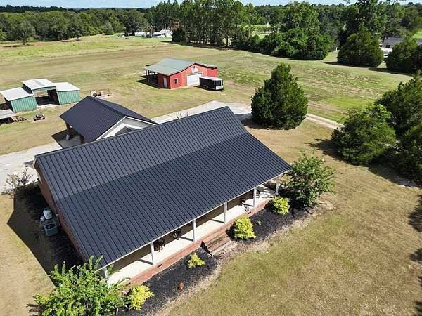 Welcome to your dream property! This beautiful 3-bedroom, 3-bath brick home sits on 22 acres of peaceful countryside and is loaded with features both inside and out. Step inside to an inviting open floor plan that connects the living room, kitchen, and breakfast area--all under a striking vaulted ceiling. Gorgeous hardwood floors flow throughout the entire 2,072 sq ft home, adding warmth and timeless style. The kitchen is a chef's delight with an abundance of cabinetry, granite countertops, and a central island perfect for gathering with family and friends. The split floor plan offers privacy, and the master suite is truly a retreat--highlighted by wood plank walls, a spacious walk-in closet, and an oversized bathroom featuring double vanities, a jacuzzi tub, and a large walk-in tiled shower. Two additional bedrooms on the opposite side of the home are generously sized and share two well-appointed bathrooms, ideal for family or guests. Outside is where this property really shines! You'll find: A 50x65 metal workshop currently set up as a welding shop A 36x24 horse barn with 3 stalls and a tack room A 25x35 enclosed building with two lean-tos--perfect for storage, hobbies, or more workspace Whether you're looking for a family homestead, a hobby farm, or a place to run your business from home, this property has it all. There's just too much to list--you have to see it for yourself! Contact your favorite REALTOR today to schedule a private showing.