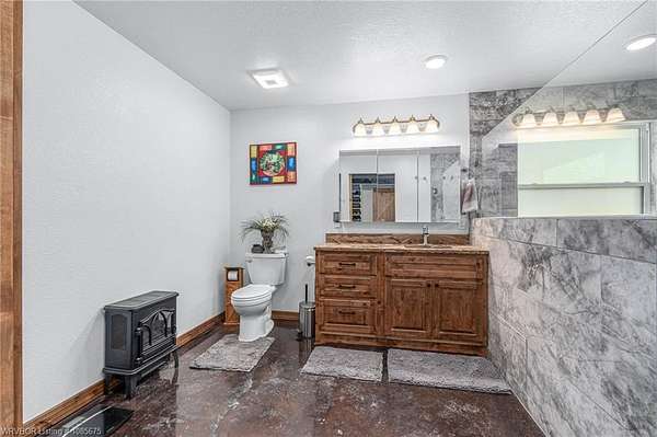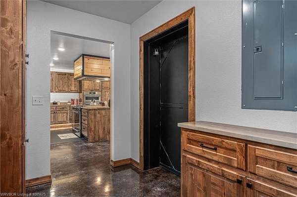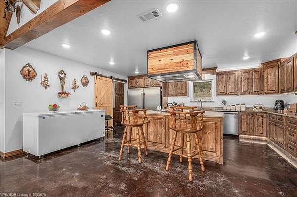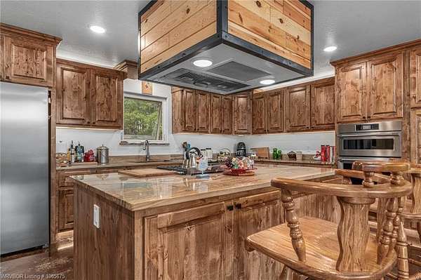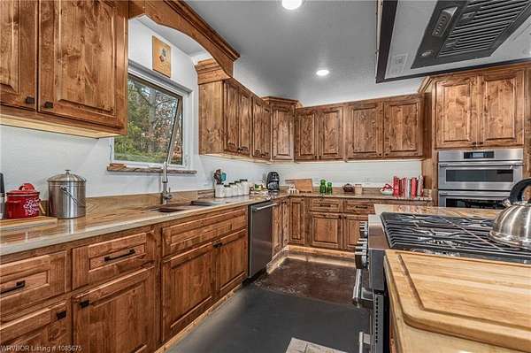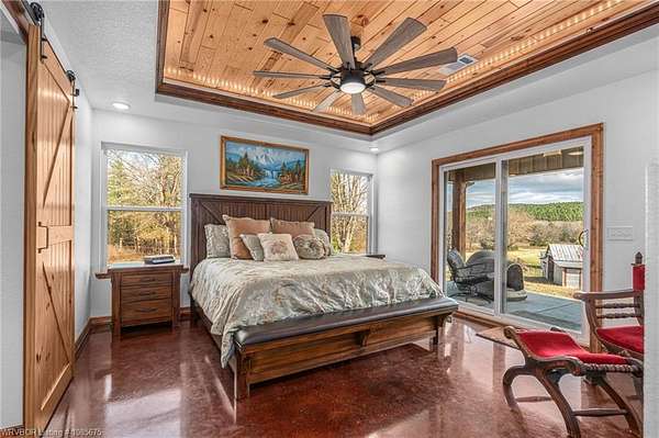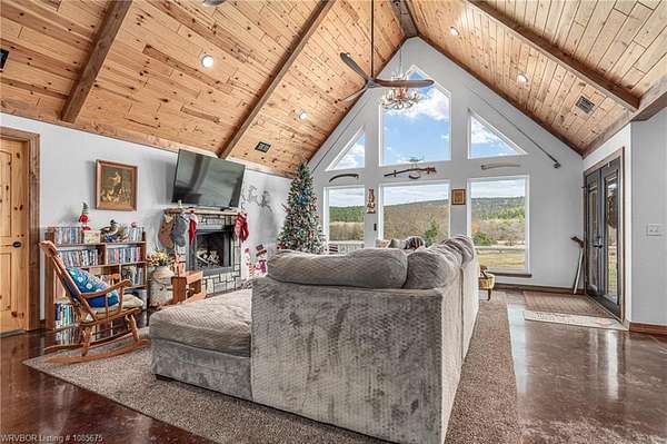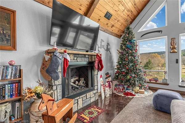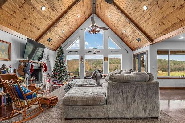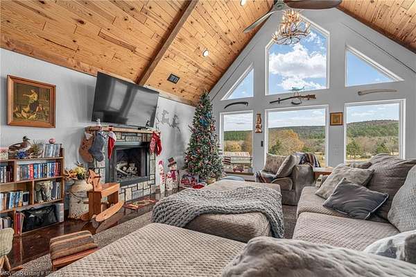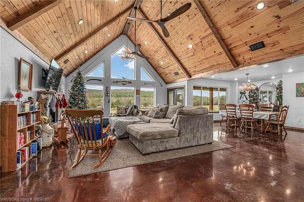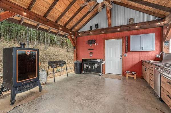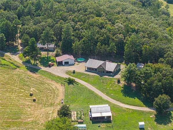 Nestled on 40 pristine acres and bordered on two sides by the National Forest, this custom-built home offers unmatched privacy and self-sufficiency. The land features three ponds, a flowing creek, cattle pasture, muscadine grape vines ideal for winemaking, a greenhouse, chicken coop, and a 140x160 corral. A fully engineered water system includes a custom treatment plant with a 900-gallon tank and an additional 1,500 gallons of rainwater storage. The property is equipped with two generators, a 25x25 powered shop with all woodworking tools and machines conveying, and multiple outbuildings including a lean-to. 7x8 fema safe room. Outdoor living is elevated by a 40x18 covered pavilion complete with a steam shower, sauna, and outdoor kitchen-perfect for entertaining. Four RV spaces (with two RVs conveying) expand the property's versatility, making this an exceptional retreat for homesteading, recreation, or luxury country living. This is a turn key property, seller will leave all wood working equipment and tools, RV's, chickens, etc..