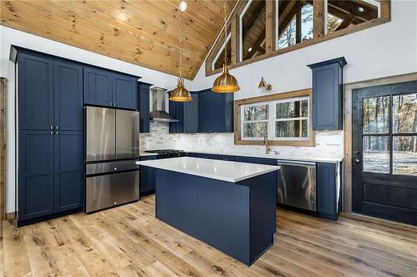 New construction with gorgeous mountain views perched on a 1.5 acre lot, just 3.5 miles to downtown Ellijay. Step in to the inviting open floorplan that seamlessly blends the spacious living, dining and kitchen areas creating an ideal space for entertaining or family gatherings. Modern kitchen cabinetry, stainless steel appliances, granite countertops and large island. The living area offers beautiful wood and beam vaulted ceilings, the ambiance and warmth of a cozy electric fireplace and abundant natural light from the large windows framing those incredible views. The primary suite on the main floor is your own private getaway with spa inspired bath with soaking tub and separate tiled shower. Walk out to the deck through the double glass doors to enjoy your morning coffee, read a book or take in the mountain view. 2 more spacious bedrooms and full bath complete the main level. The finished terrace level offers even more living space with a full bath and 3 large rooms ideal for a game room, home office, gym or guest rooms. This mountain retreat is only 45 minutes from Atlanta and a few minutes to Ellijay's apple orchards, wineries, charming shops, hiking trails and and all the outdoor adventures the North Georgia Mountains has to offer. If you are looking for a full time residence, weekend getaway or an Airbnb investment property schedule your tour today!