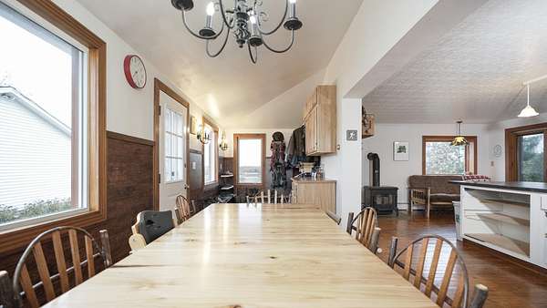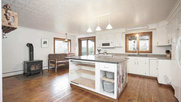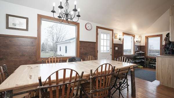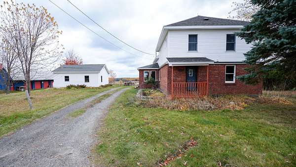 MOTIVATED SELLER!! Beautiful 4-bedroom, 2-bath farmhouse, built in 1870, offers classic country charm with many modern updates. The home sits on approximately 146 acres, with about 45 acres of tillable land. The property also includes a separate 1-bedroom, 1-bath apartment, perfect for rental income or as an in-law suite. The spacious kitchen features an island and opens into the dining area with wood floors and a cozy wood stove. The living room offers a warm, inviting space complete with a fireplace. The first floor includes a bedroom and full bath, while the second floor offers three additional bedrooms and another full bath. The large primary suite overlooks the beautiful acreage. Additional features include a 4-car garage with a woodshop, a hay barn with milking stalls, and plenty of space for storage or animals. The land is abundant with deer and turkey, making it perfect for outdoor enthusiasts or those looking to start a farm.