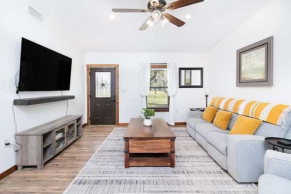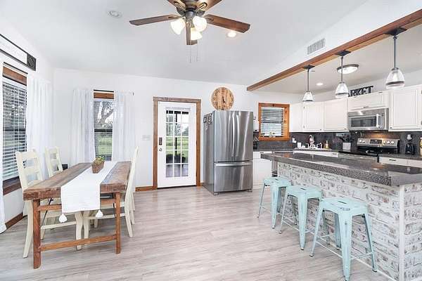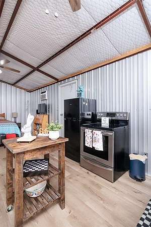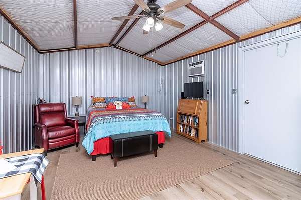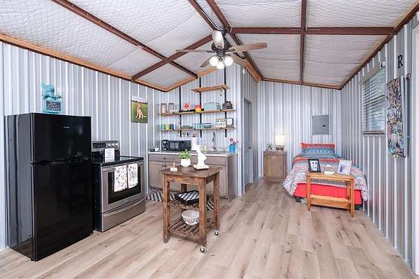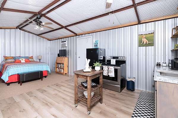 Beautifully updated barndaminium on 8.5 ag-exempt acres, featuring 1800 ft2 in the main house, broken into 1100 residential and 700 shop space. Quiet country living only miles from Brady, and en route to Mason, Texas! House offers open concept with 1 bedroom, 1 bathroom, 1 office with great storage off the interior laundry room as well. The covered patios rival any other spot, and welcome cups of coffee and great conversation. Central heat and air in main quarters. Additionally, this property includes a lovely guest house with 1 bed, 1 bath, and kitchenette. This area is beloved for its healthy Oak trees throughout, and living in serenity, while close to Brady and Mason. Meticulously maintained property. 320 sq ft sea container for spacious storage needs also convey. Brand new septic tank in 2019, 2 RV hookups, and private gated access make this property hard to beat.