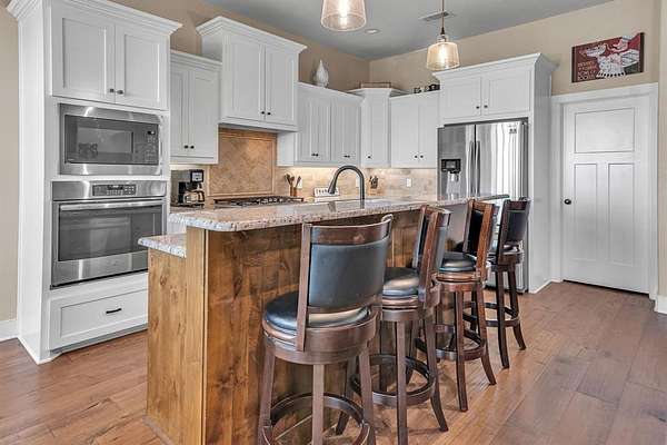 - Cathedral Ceiling(s), Decorative Lighting, Double Vanity, Eat-In Kitchen, Flat Screen Wiring, Granite Counters, Kitchen Island, Open Floorplan, Pantry