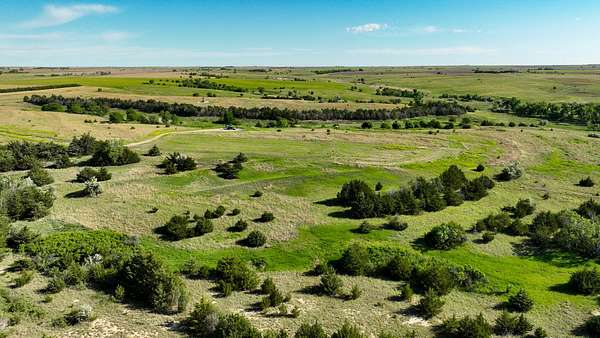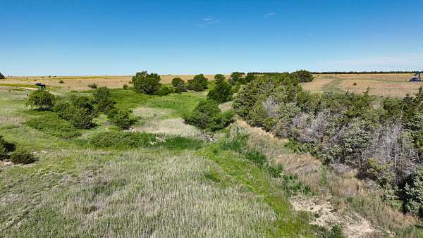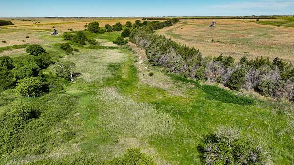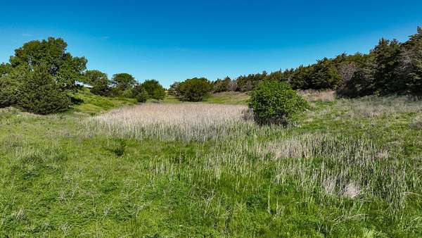 Stretching across a beautifully diverse landscape, this recreational gem features nearly a mile of mature cedar shelterbelts, native thickets, and deep cedar-lined draws that create ideal cover for pheasants, prairie chickens, bobwhite quail, whitetails, and turkeys. The habitat is second to none, with plum thickets, brush-filled bottoms, and rolling CRP terrain working in harmony to hold and sustain wild game year-round.