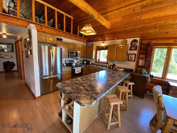 Welcome to this Montana mountain property that sets on 47 private and peaceful acres and offers magnificent views of the Tobacco Root Mountain Range and the Jefferson River Valley. Landscaped by Mother Nature with immense boulder outcroppings, trees, natural grasses and flowers. This area is rich in recreation, trail systems, wildlife and scenery. Colbert Creek borders the property on the entire south boundary, and public lands border the property on the north which provide miles of excellent hunting. The house is of Swedish Cope log design both inside and out to fit the character of the natural surroundings. The interior boasts a Great Room with vaulted ceilings and windows that frame the stunning views. The southeast solar exposure allows in natural light, creating a bright atmosphere warming the home in cooler months. The living area opens to both the Kitchen and Dining Room. The Kitchen is spacious, functional and updated featuring new stainless steel appliances. The main level features a Master Suite, a second bedroom and a second full bathroom., both bathrooms are updated. The loft offers many potential uses from a 3rd bedroom to an office to a hobby room. Property is selling with the house partially furnished. This unique property is a perfect place to slow down, relax and enjoy the special lifestyle that comes with the beautiful surroundings, tranquility and recreational opportunities. Located about halfway between Butte and Whitehall off Highway 2. Check out the exterior drone video attached to this listing. . The Seller also owns an adjoining 21 acres that is being sold under a separate listing.