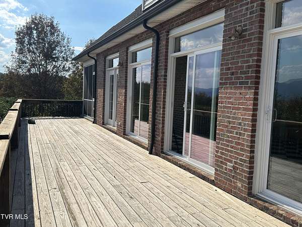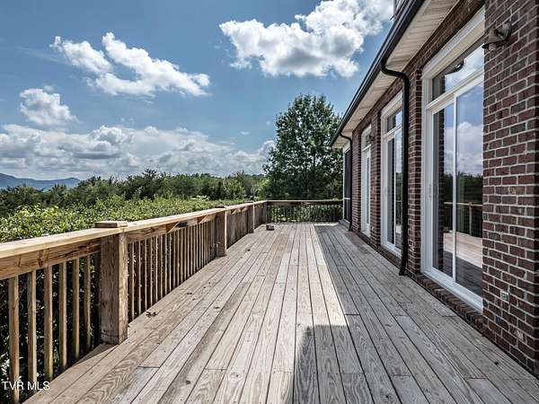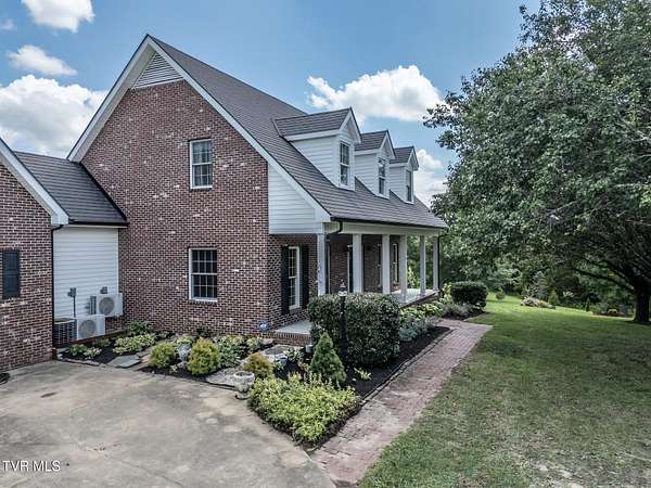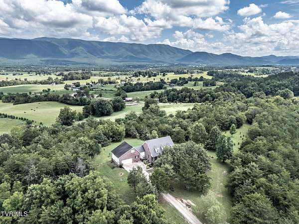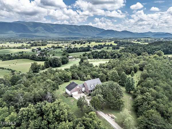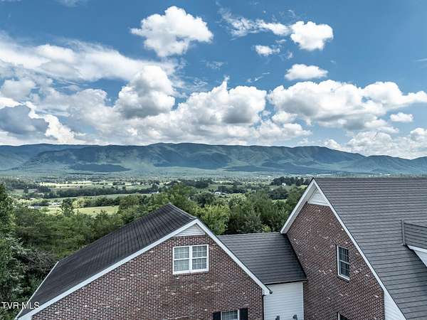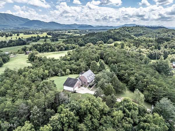 - ''Sellers are motivated and open to reasonable offers.'' Looking for your own slice of heaven? This stunning custom-built Cape Cod-style home sits on approximately 12 acres of serene countryside, offering Panoramic MOUNTAIN VIEW that will take your breath away. Thoughtfully designed by the original owner-builder, this executive luxury estate offers exquisite craftsmanship throughout. With the 4 new sliding glass doors that frame the ever-changing beautiful MOUNTAIN VIEWS that can be enjoyed from the primary bedroom, kitchen, living room, formal dining room, sunroom, and especially the expansive 10' x 72' back deck-ideal for entertaining or peaceful morning coffee. The chef's kitchen is a dream with abundant custom cabinetry, a gas fireplace, coffee bar, built-in desk, and much more. The formal dining room easily seats 15 and the living room with another gas fireplace and adjacent screened sunroom invites relaxation. Utility Rm & Full Bath on Main floor. Upstairs, you will find 2 spacious BR,2 BA with the Primary having built-ins, hardwood floors a luxurious bath with soaking jet tub, double vanities, walk-in-shower, and a massive walk-in closet. The bonus room over the garage with lots of built-ins could be your 3rd Br./Office or Theater Rm. Additional highlights include a two-car garage with workshop and an abundant storage, METAL SHINGLES, recessed lighting. Recent updates; 2 new HVAC units, hardwood floors in Primary Br, and upgraded shower and tile in Bath. This master piece is surrounded by, mature Oak trees and Ash trees that could be harvested, evergreens, and flower gardens, and lots of wildlife. This home is truly a private retreat where nature and elegance meet. If you need a private workshop you have that also. There is a 20 x 40 Building with air conditioning, and on one end a large double door for pick up and delivery. Even with all this privacy you are still close to Doctor Office, Schools, Churches, Grocery, Knoxville, Greeneville, Johnson City