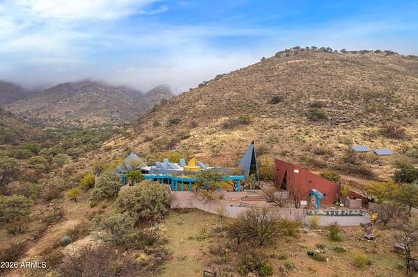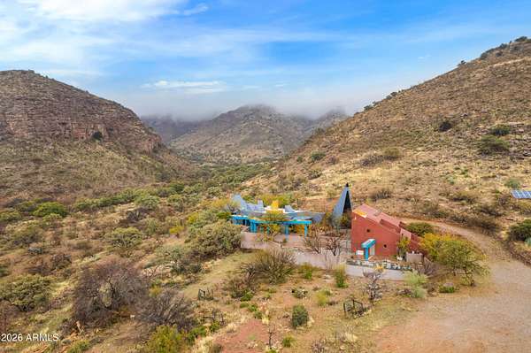 Discover a one-of-a-kind desert mountain compound tucked away outside historic Bisbee, offering a spacious main residence, guest apartments, a yoga loft, and a dedicated artist studio perfect for artists, retreats, or income potential as a ranch and or as a guest ranch. Surrounded by peaceful high-desert views with a total of 2,500 acres comprising 760 acres of deeded land with the balance in state and BLM leases. This is a working cattle ranch that currently holds 57 head of black angus beef. Located approximately 20 minutes outside of Historic Bisbee Arizona and a short 1.5-hour drive to Tucson International Airport. Accessed by a scenic dirt road, this unique rural property offers privacy, wide-open desert views, and peaceful surroundings. The main residence of 4,364 square feet features 3 bedrooms, 3 bathrooms, two spacious living rooms, a gourmet kitchen, and a dedicated laundry room, providing comfortable and functional living space. The owner's compound has an infinity pool and spa overlooking the magnificent Sonoran Desert Valleys. Wander about the large patio areas filled with lush landscaping and three ponds with artistic waterfall features. This home is off the grid with a large generator and private well. Situated in one of the famous sky islands of Arizona it offers a unique wildlife wonderland with Mule and whitetail deer, javelina, black bear, mountain lions, coyotes, coatimundis, ring tailed cats, and three species of quail, to name a few. This area is known as the northernmost range of majestic jaguar, ocelot and Mexican Grey Wolf. The property also includes several detached exterior structures creating a versatile compound. Outside you will find a two-story yoga room/loft apartment, two separate guest apartments, and an outdoor bathroom with an additional laundry area. A separate detached building currently used as an artist studio offers the perfect space for artists, workshops, or creative projects. This one-of-a-kind property offers incredible flexibility as a private retreat, artist compound, multi-generational living space, or income-producing investment, all set in the beautiful high desert landscape near the vibrant and historic community of Bisbee.