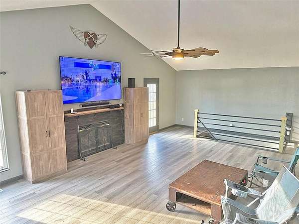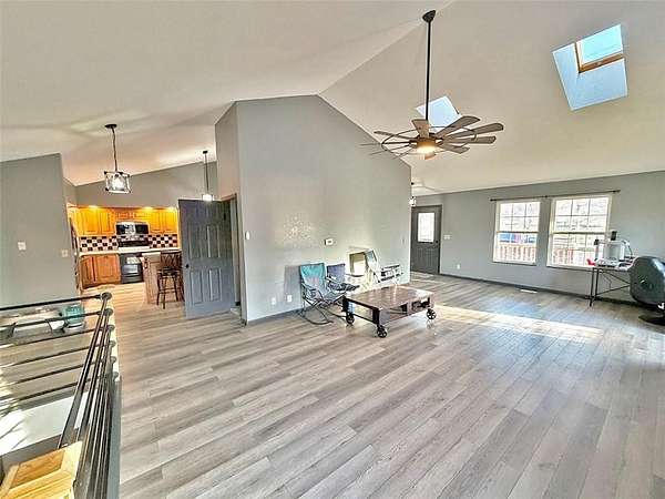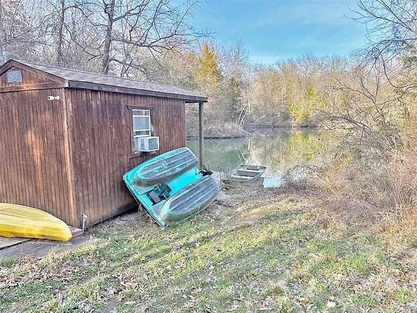 STUNNING! Set on 13 breathtaking acres, this Reverse 1.5 Story home offers acreage living and close to city. This property has rolling hills, mature trees, and peaceful water views in every direction. From the moment you pull in, you feel it... this isn't just land-it's your own private retreat. Inside, the home is designed for true main-floor living, featuring a spacious primary suite with 2 large walk-in closets and huge primary bath and laundry on the main level, making everyday life both convenient and comfortable. Vaulted ceilings and natural light create an open, inviting feel, while the country kitchen becomes the heart of the home-perfect for gathering, cooking, and connecting. With 5 bedrooms total, or one of those bedrooms is in a 2nd living area, apartment that sets this property apart from anything else you may find. The fully independent apartment has its own private entrance opens the door to: Multi-generational living, Guest space, possible rental income opportunity or Private office or studio. The property also features: A stocked fishing pond with Bass, Blue Gill, Catfish and Carp as well as a boathouse/Tack room and dock. Rolling hills and wooded acreage and trails for privacy and recreation. Fenced areas ready for farm animals. A fenced backyard ideal for pets or play and an above-ground pool for summer relaxation. You will find Mulberry, Pear, Cherry Plum and Peach trees. Whether you're looking to start a hobby farm, create a private getaway, or simply enjoy wide-open space with unmatched versatility-this property delivers. This isn't just a home. It's land, lifestyle, and opportunity-all in one. Whole Home Soft Water System installed 3 years ago.
