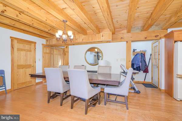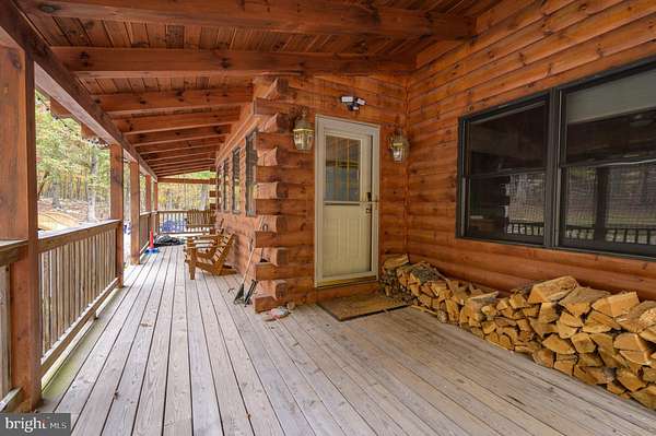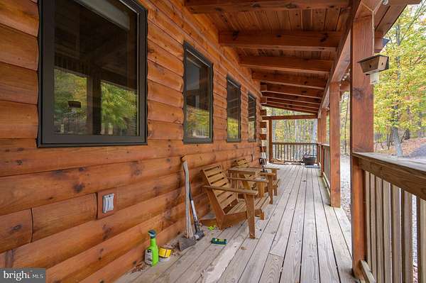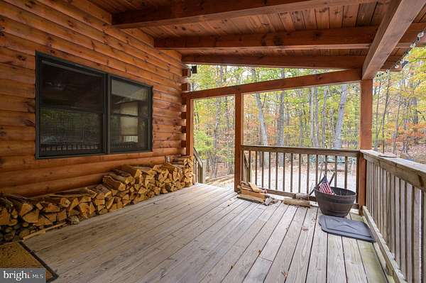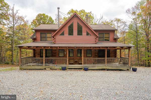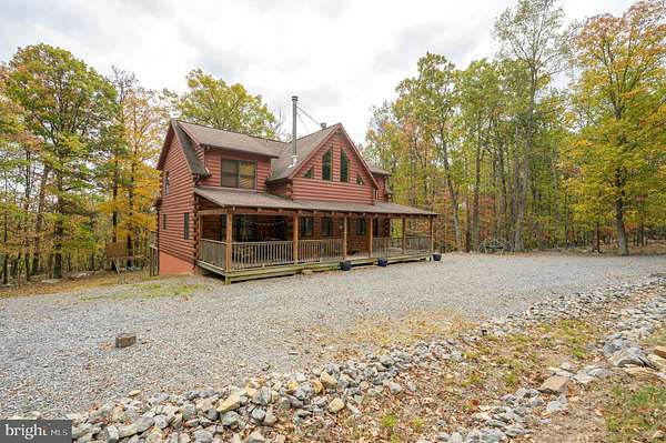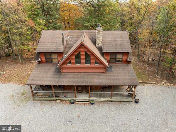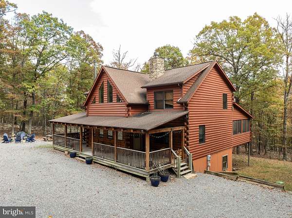 Welcome to this well-maintained log home situated on a 2.25-acre wooded lot near Cacapon State Park. Conveniently located just off Route 522 and close to the state line, this property offers an easy commute while providing the privacy and charm of mountain living. The home features a spacious two-story living room with exposed beams and abundant natural light. With five bedrooms, four full baths, and one half bath, there is ample space for family and guests. The open layout and warm wood finishes throughout create a comfortable and inviting atmosphere. All furniture conveys with the sale, making this property truly move-in ready. Enjoy the peaceful wooded surroundings from the covered porch or take advantage of nearby outdoor recreation opportunities at Cacapon State Park. Located just a short drive from downtown Berkeley Springs, this property combines convenience, comfort, and rustic appeal.