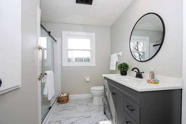 Est $1,986/moRenovated country home ready for you to move in! (2026) NEW kitchen cabinets refaced, granite counters, plumbing fixtures, lighting fixtures, flooring, electric outlets, 2 vanities, custom shower tile in lower bath, toilets, vinyl siding. (2024) Furnace, water heater, upstairs shower. (2023) Windows. Newer metal roof. You will love the spacious multi level deck for entertaining too! Plenty of lot size to add an outbuilding if you choose from the concrete driveway.